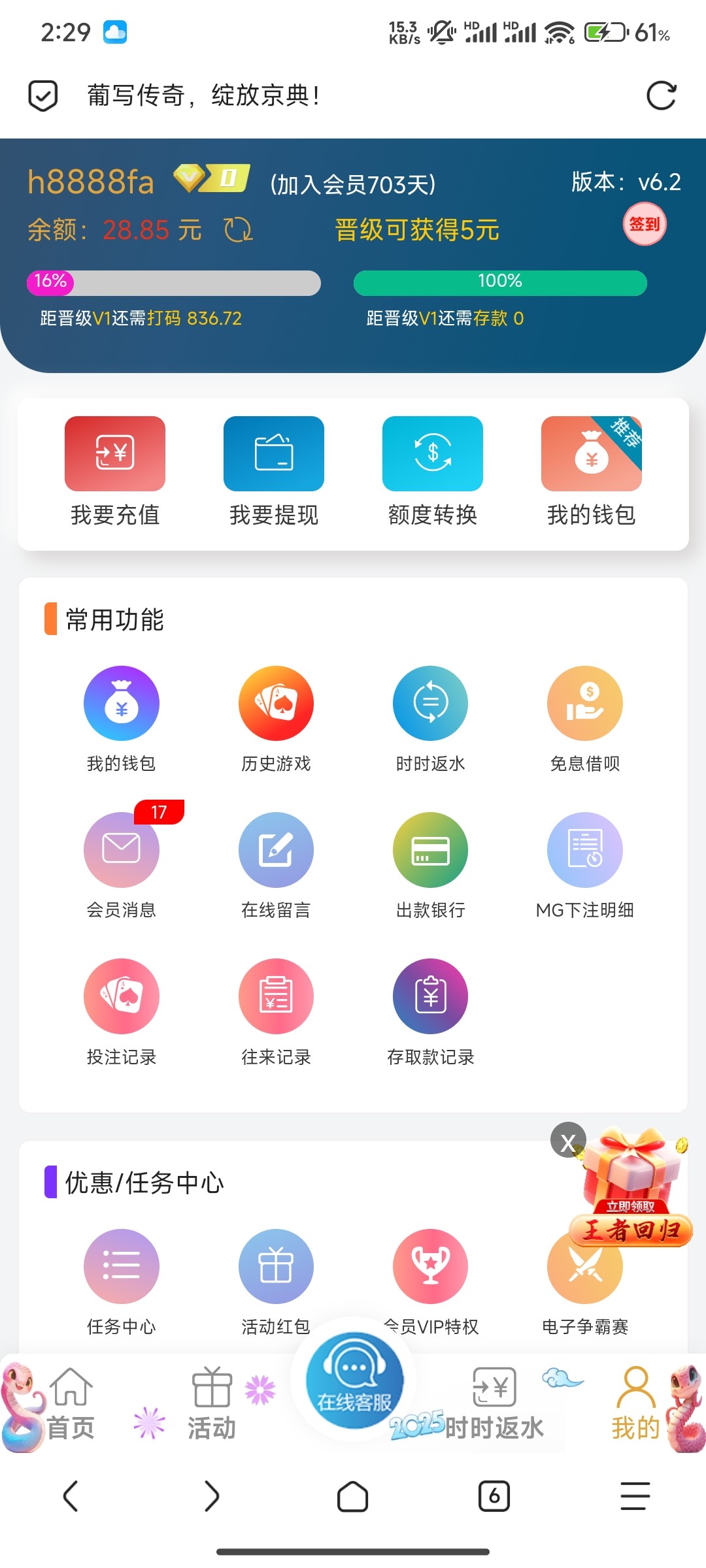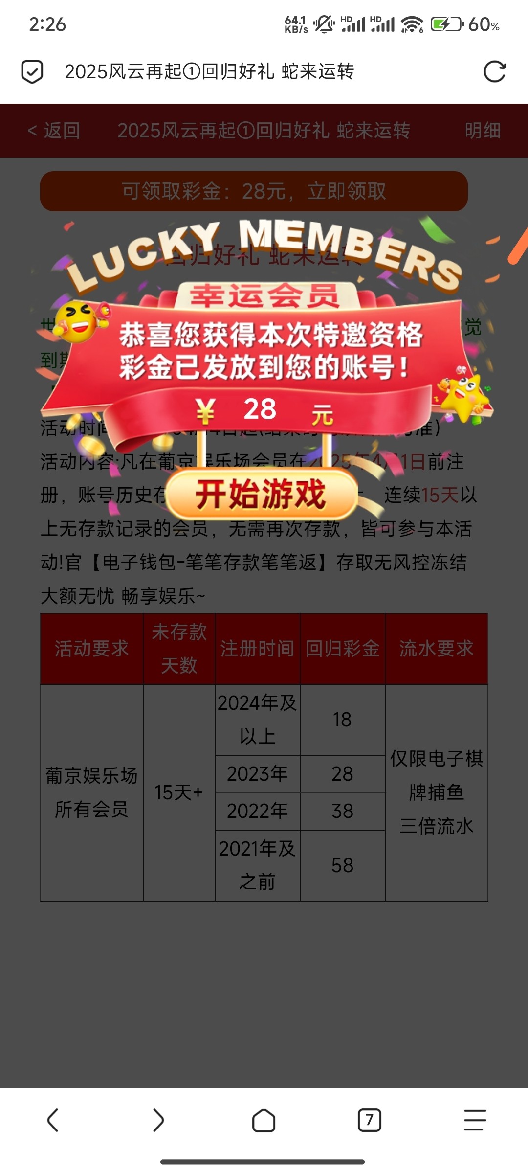 注册一年以上登录上去,我的右下角有王者回归点进去,自助领取 官网:5877.EE