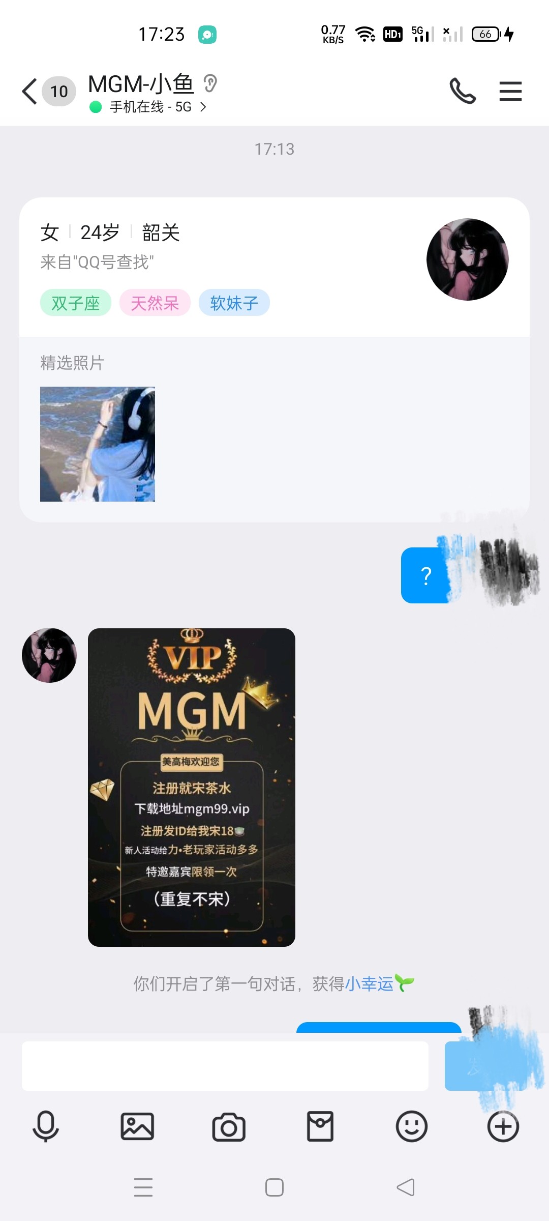 这种一般都是批量加好友的,看下QQ有没有收到加的,送18,没打出来 mgm99.vip
