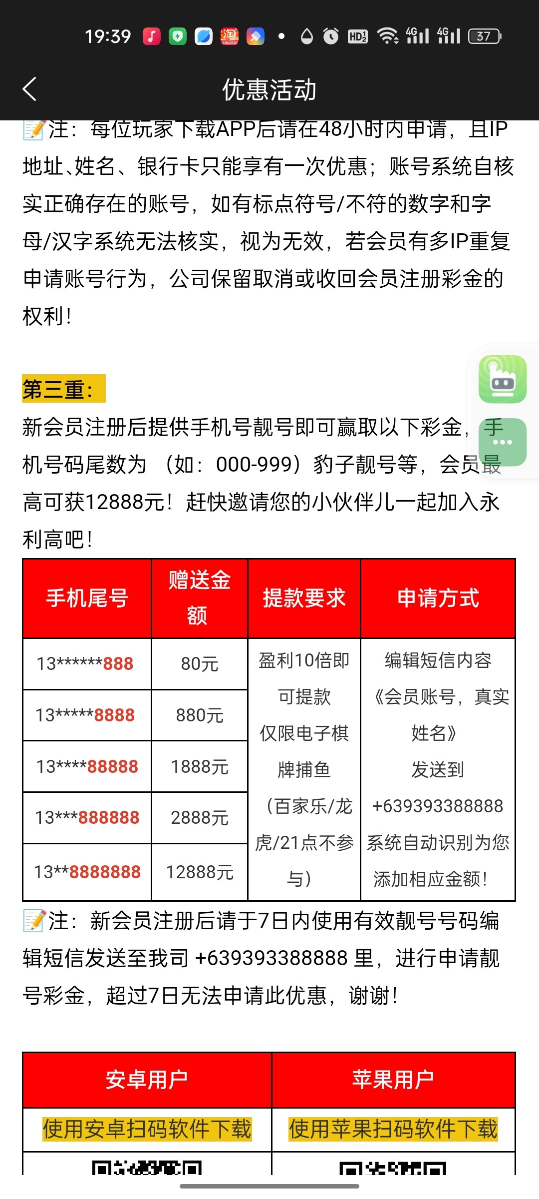 永利高,手机靓号彩金