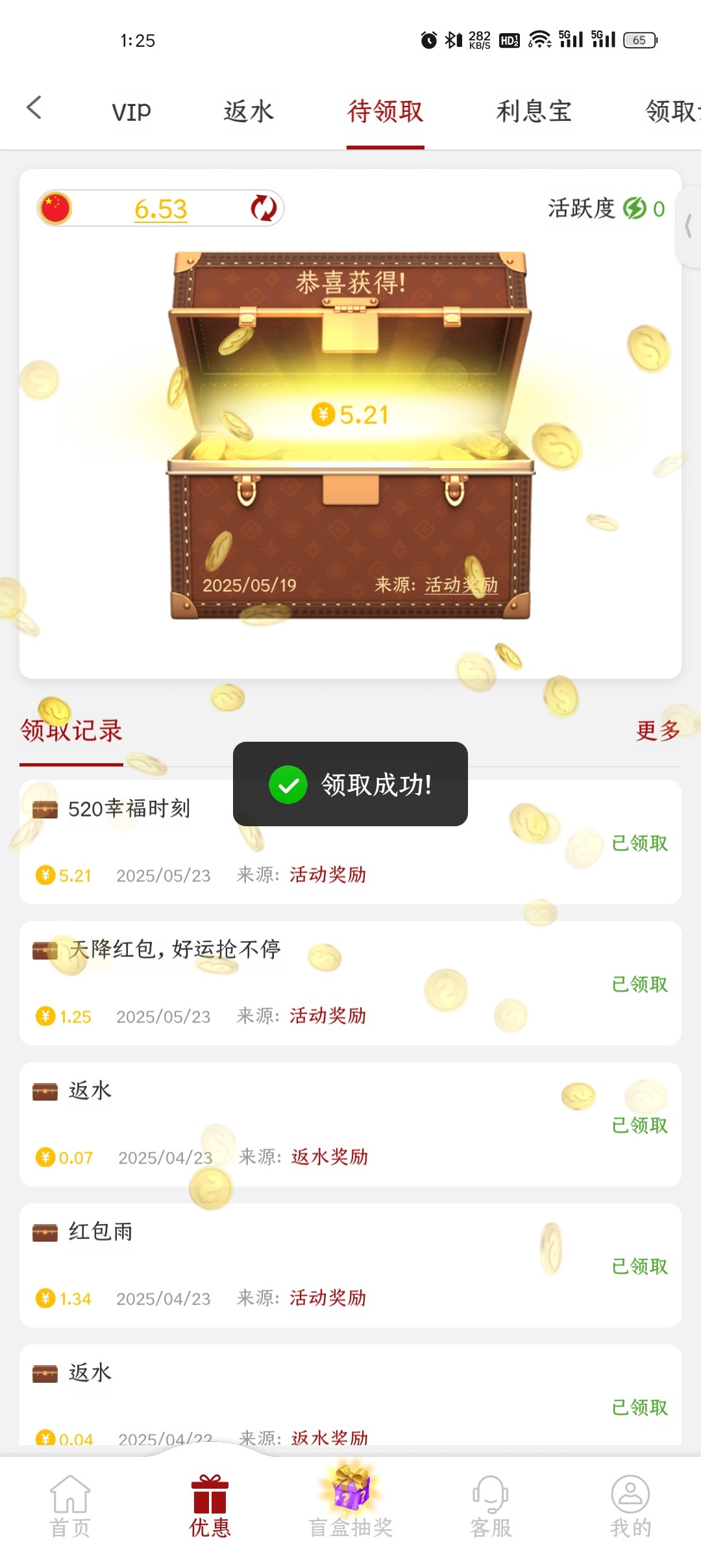 领了7块白嫖200不知道到不到,好久没充值了