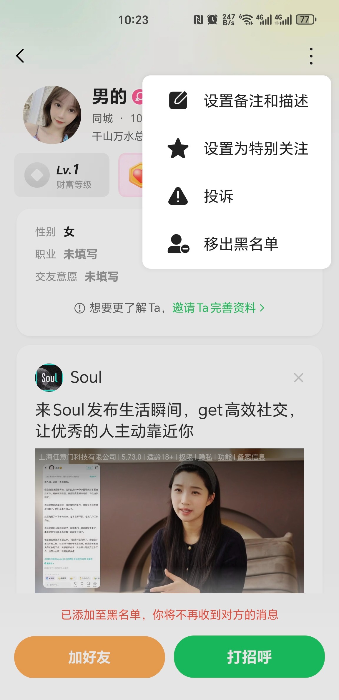 连信不可信一点,加我v打了十几分钟视频跟我说男的,还骗我说自己是个女的。给我恶心坏了还打了十几分钟视频