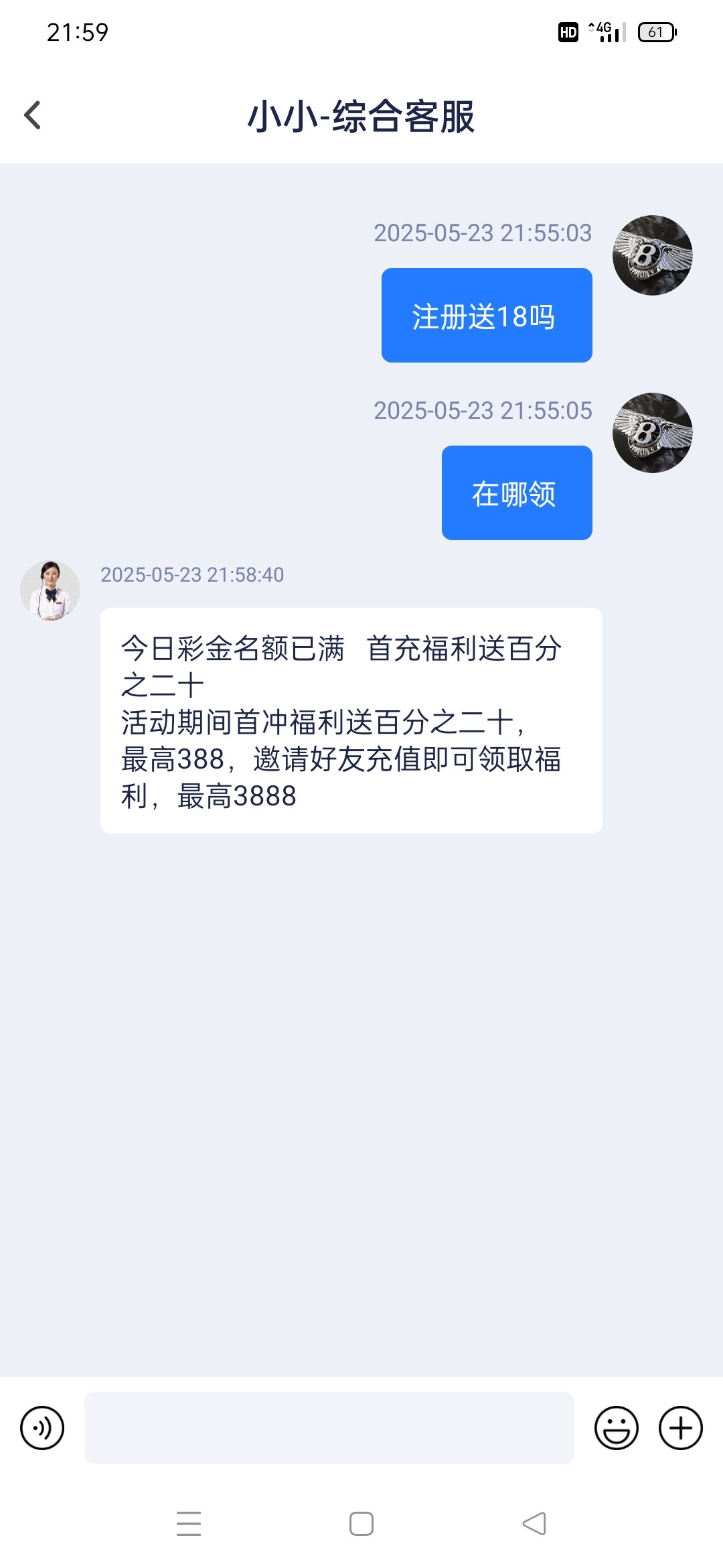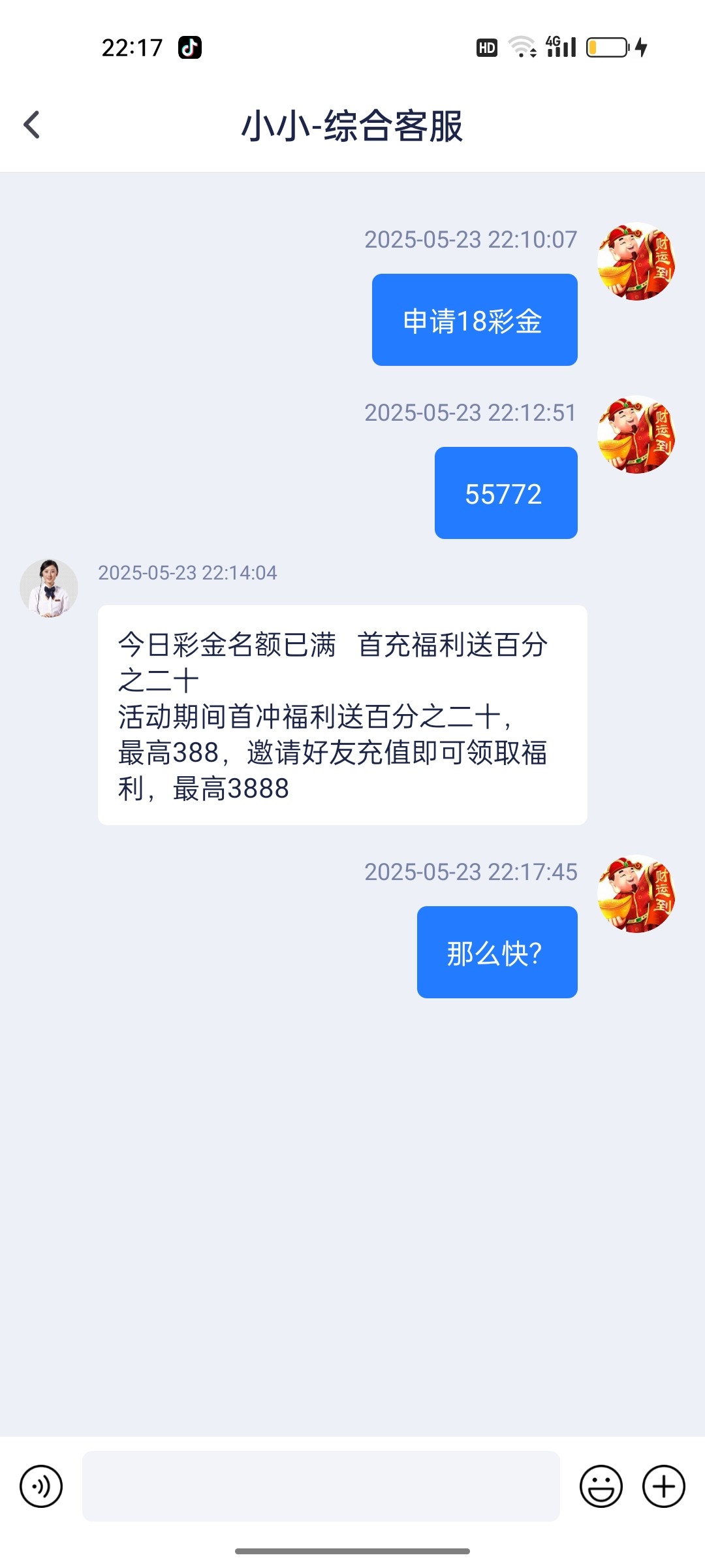 今日彩金名额已满 首充福利送百分之二十 活动期间首冲福利送百分之二十,最高388,邀请好友充值即可领取福利,最高3888