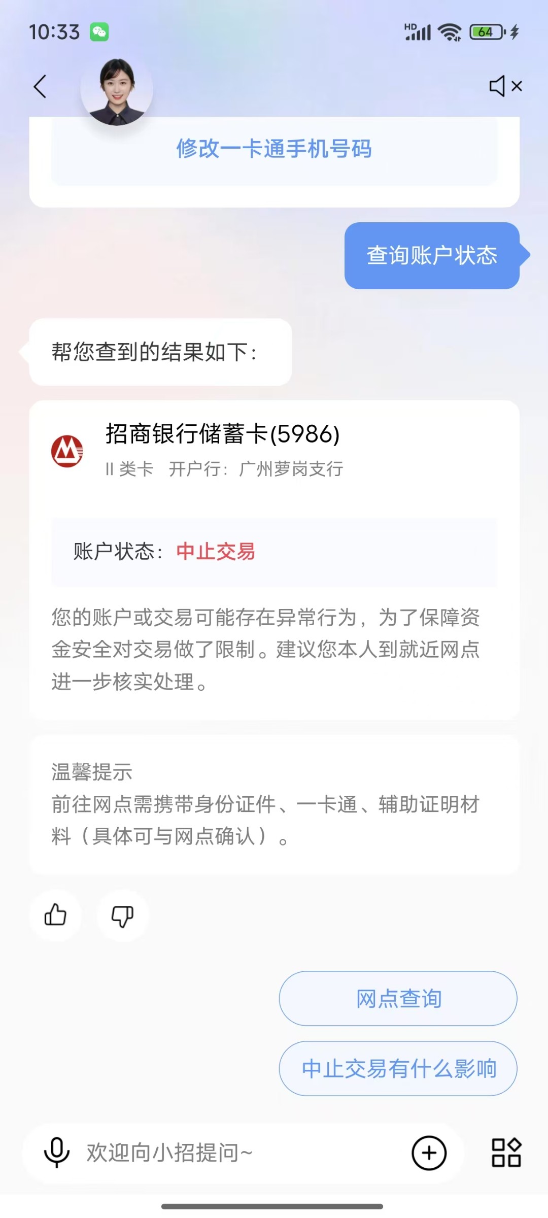 银行卡中止交易