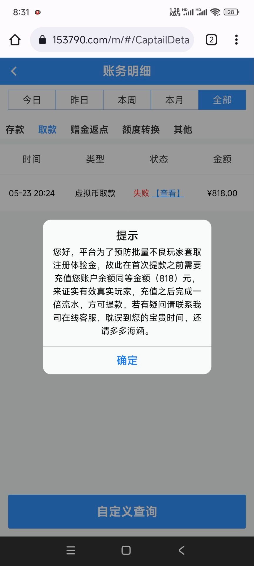 这傻逼平台千万别充值,黑不黑不知道,反正就是上来就让我参加1000+38,那个小蓝台上来就充1000的,杂种平台,别为了几十彩金去冒着被黑风险