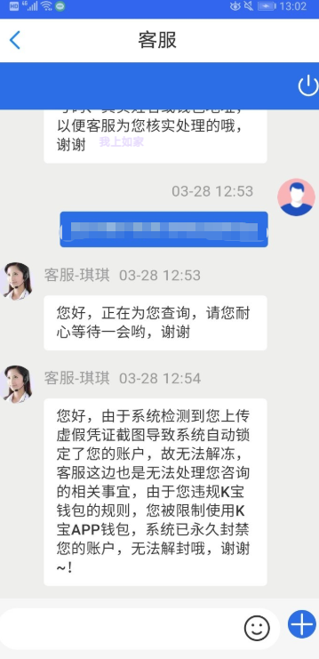 兄弟们第1次用k宝钱包,竟然说我违规,我真的莫名其妙,他说我的证件是假的。以后你们不要用k宝,垃圾