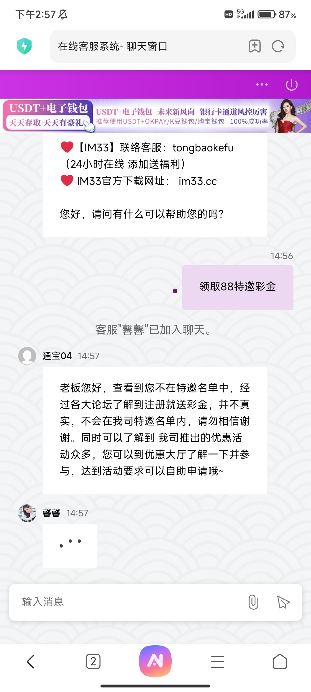 注册完账号 去找在线客服 说领88特邀彩金 会给你彩金专员网页