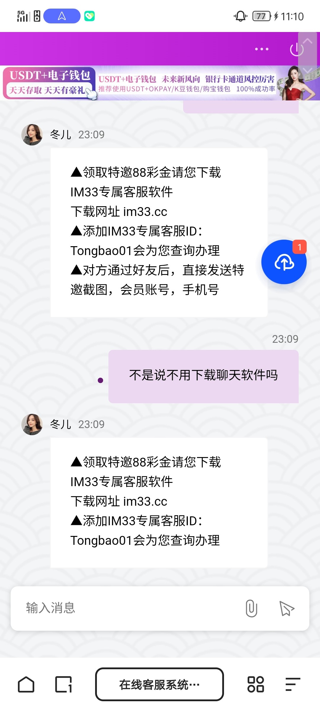 有鸡毛,只有彩金专员的账号,想要必须下载聊天软件