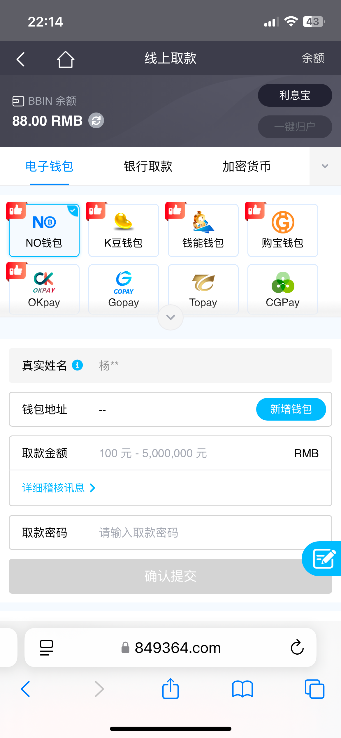 碰到了,出款不知道能不能到