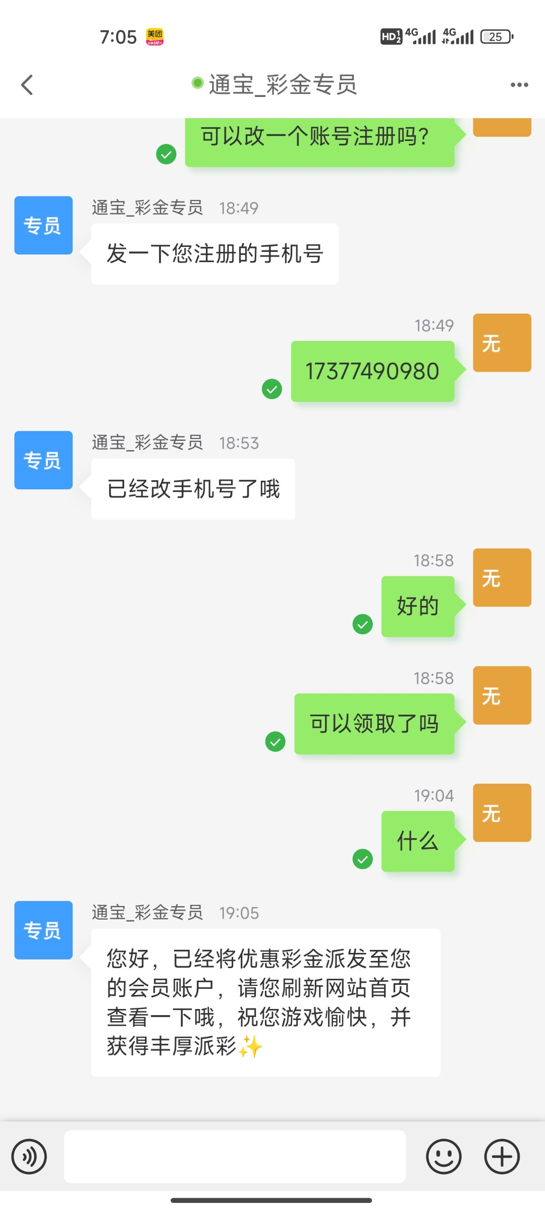 在线客服问你要换个时间去就可以 彩金专员让他直接查号码就行