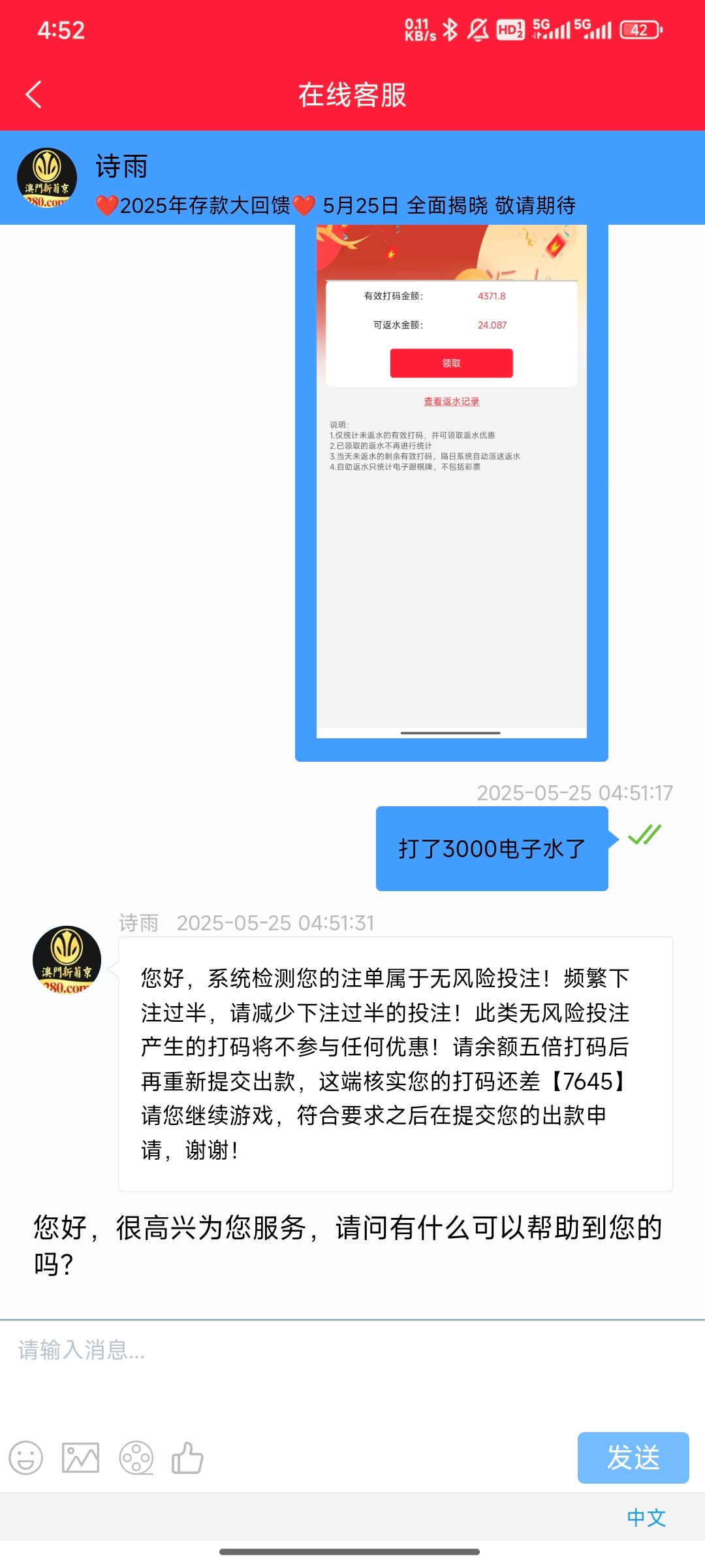 正常我二年前充二千提二千四罚我三倍打够罚我十倍