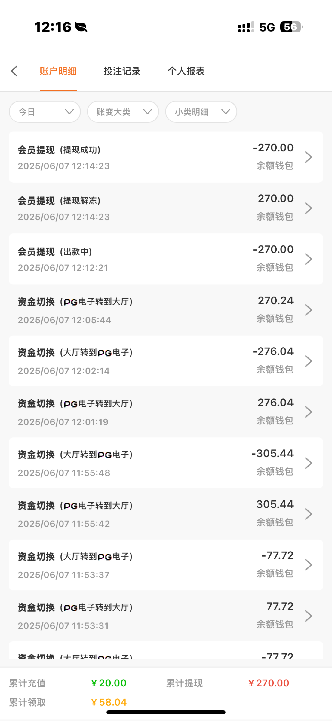 @hzs9793 ,肯定到了的我今天一百赢三千多都给了