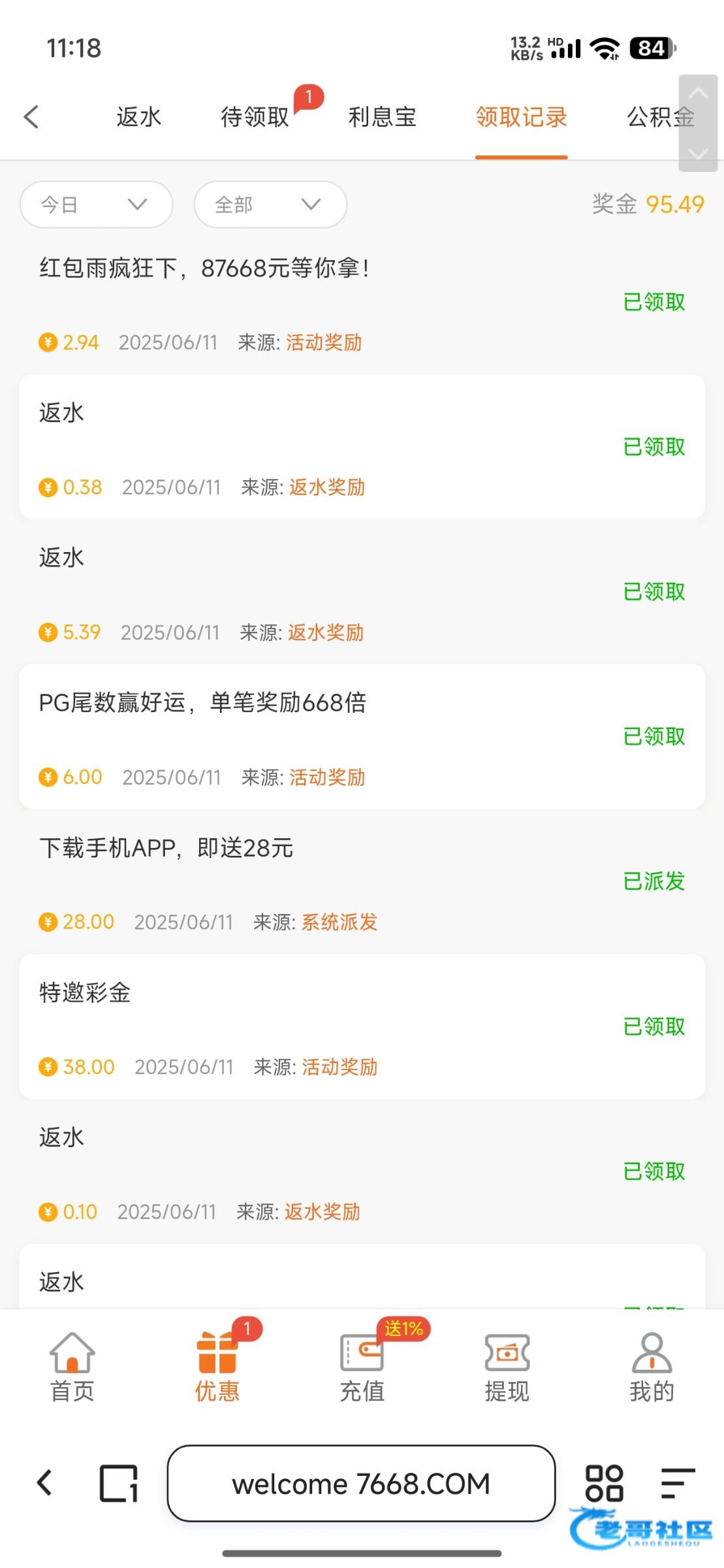 感谢老哥推荐 平台福利多多 20+20下380已到位