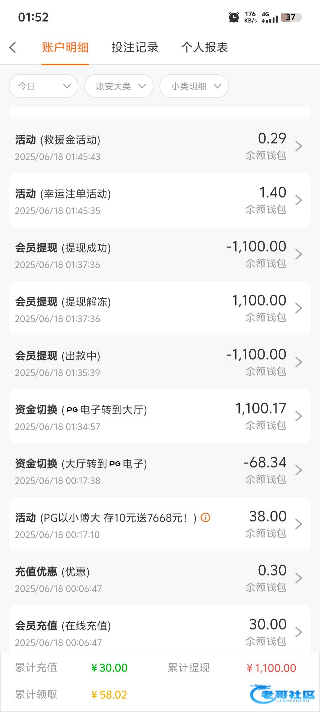 没水,参加了20+20,也领了下载APP彩金28,特邀彩金38,一次都没超过本金