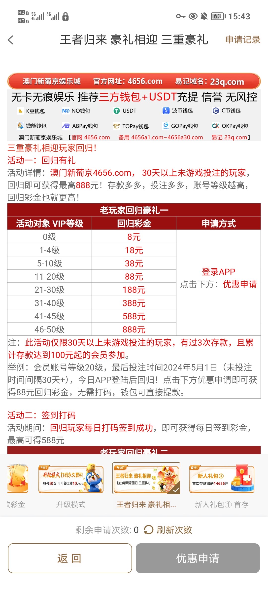 上号就看到有14,不知道什么彩金,都没有记录,充值过的还能申请回归彩金。网址4656.com