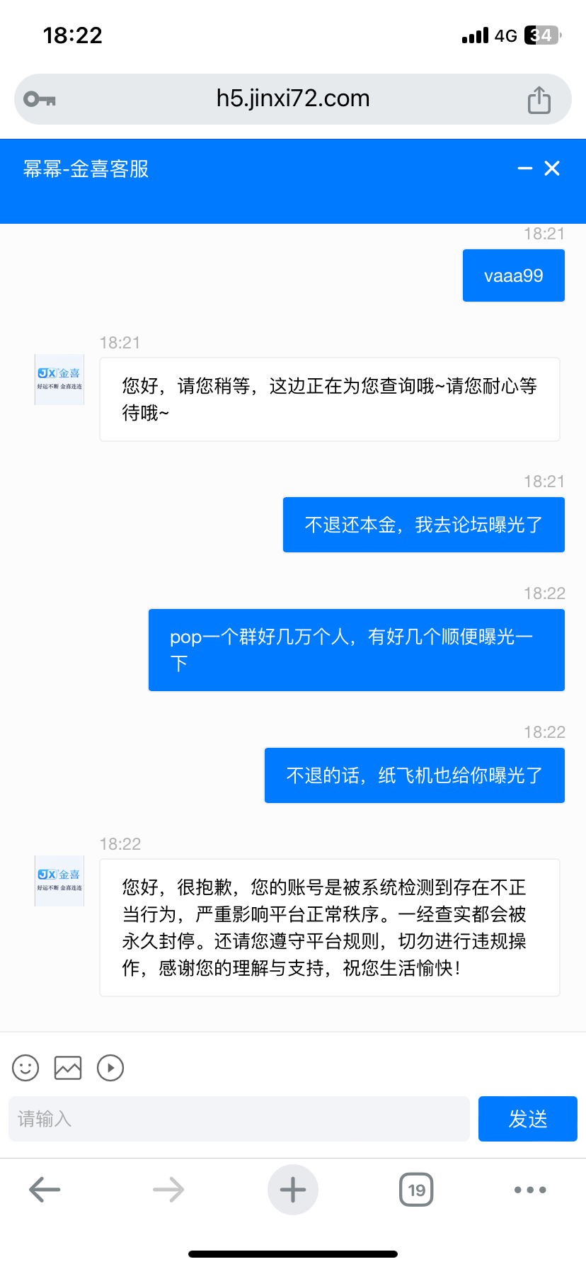 金喜黑平台,冲100提400直接封号,大家注意点