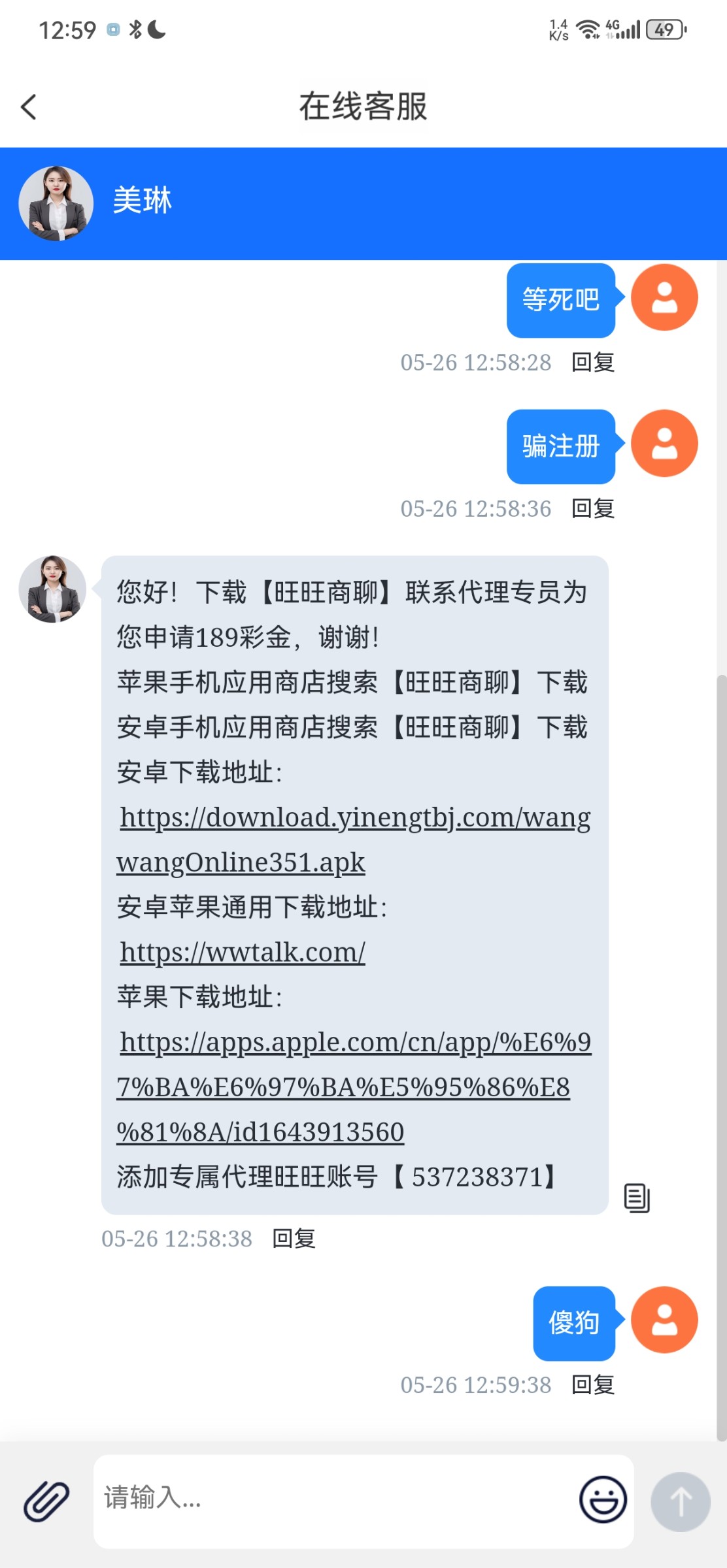 电话特邀骗注册,下载加完了旺旺说充值送