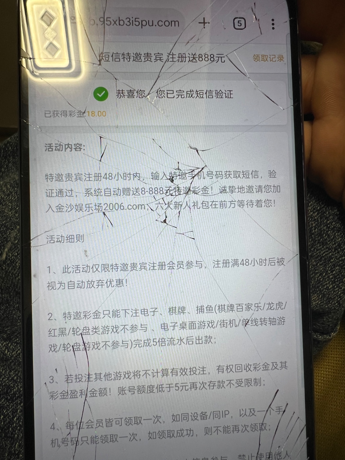 注册绑定银行卡手机号然后去优惠短信特邀贵宾领取 最低8 我领了18 打出来的兄弟来反馈一下网址 2006123.com