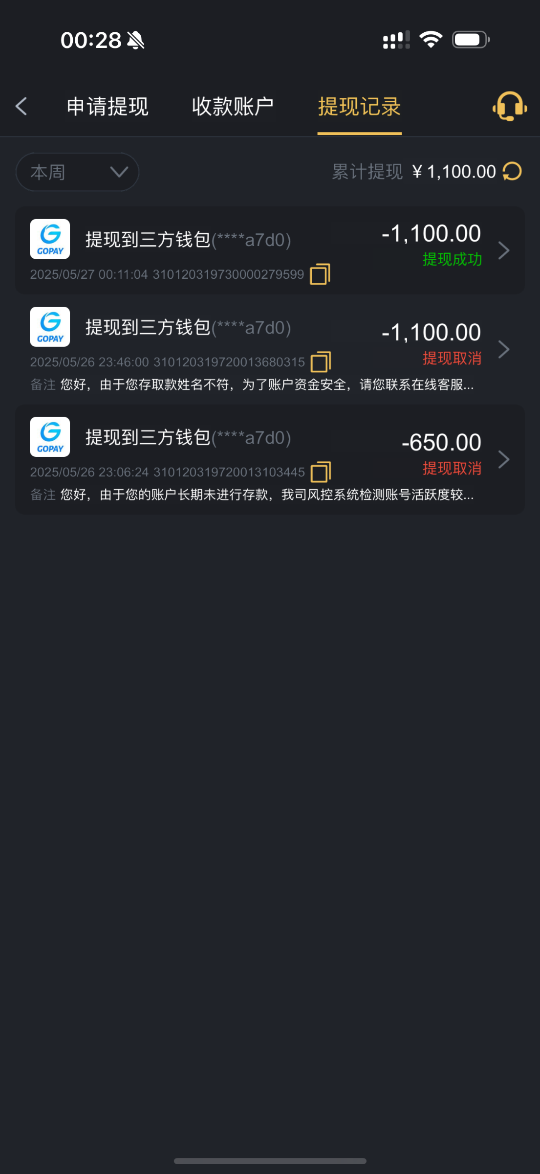 看到你们的帖子,昨晚注册充了一百挂壁,早上打开账号就冻结了呵呵