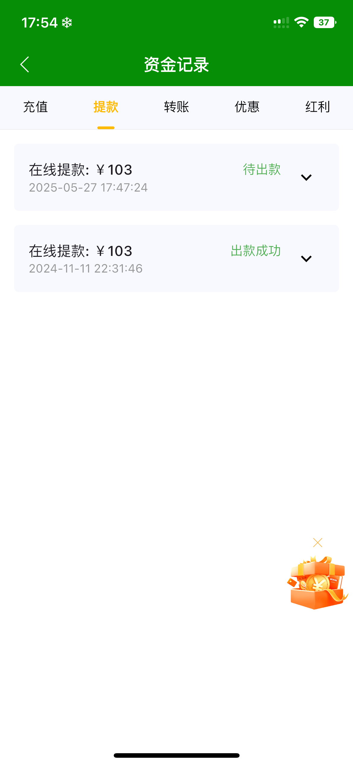 领了28两块一拉直接炸300 可惜了只能提103