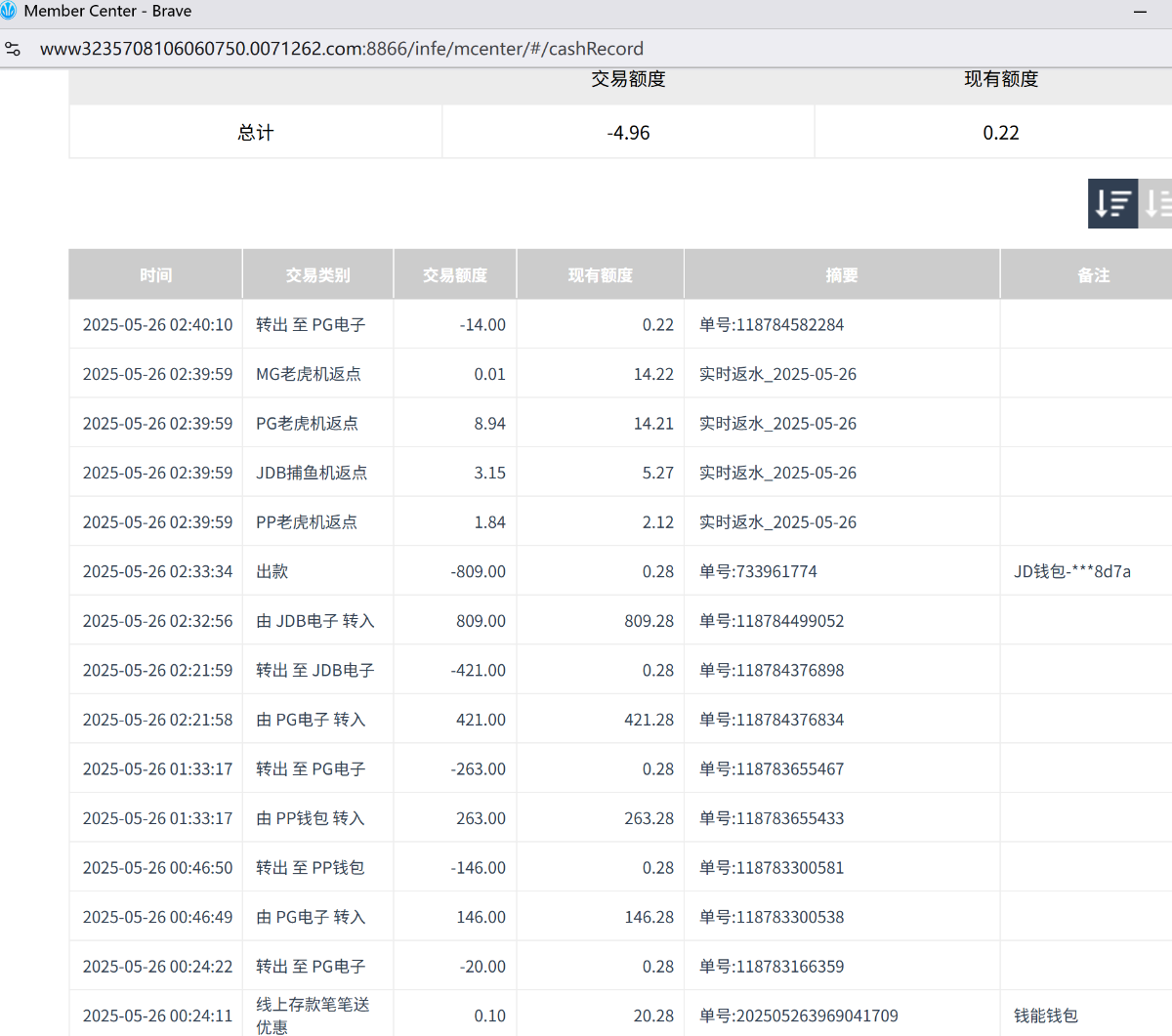20打了1万流水,上了1500多,最后洗白,因为自我感觉那个站水多就多注册了几个账号,开始打到800多,提款时候要名字相符的虚拟钱包给退回了,u也不给提,最后准备冲刺几个w的,最后还是洗白,搞得我现在一两百不想提 总想过千提