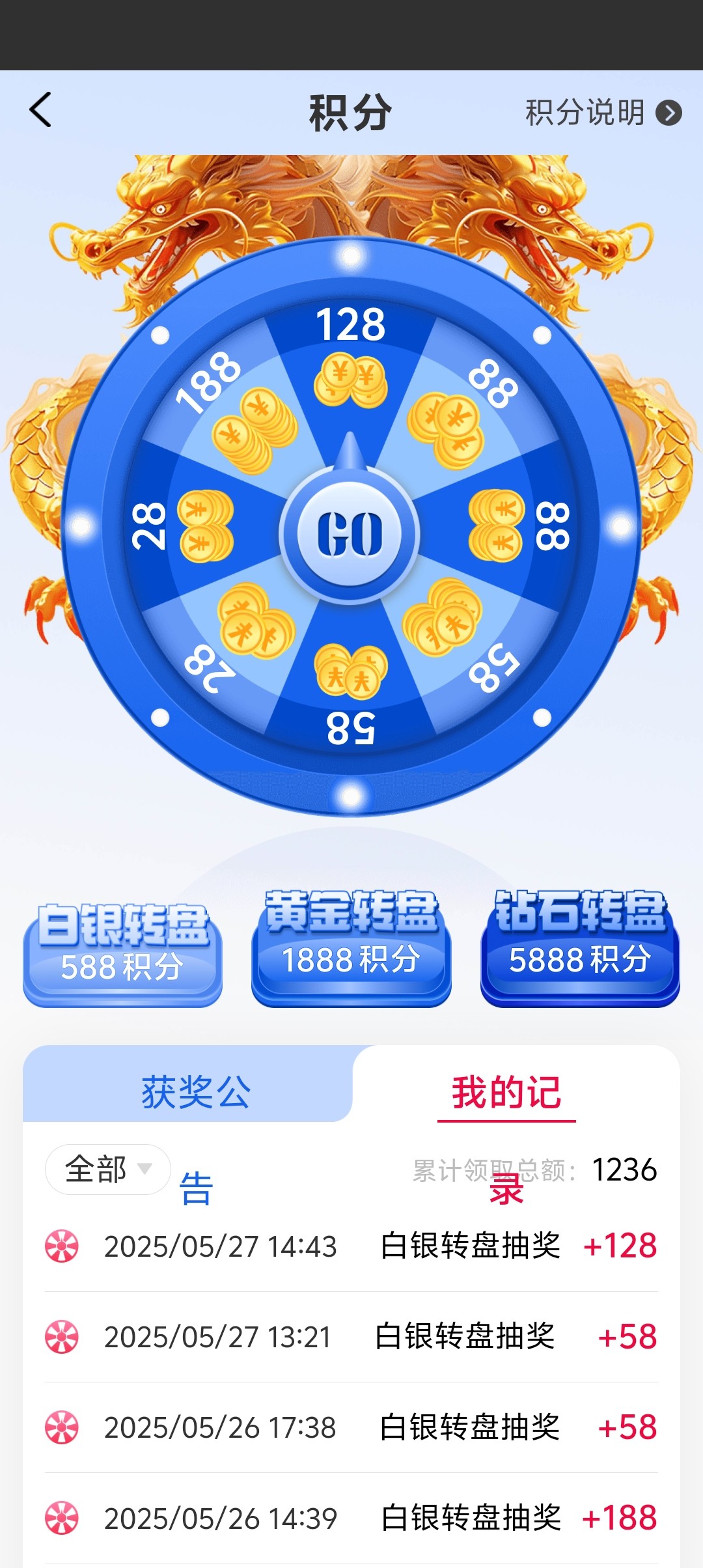 这一两年感觉有五千多转盘和积分直接兑换了。客服都劝我别上头了。。我服