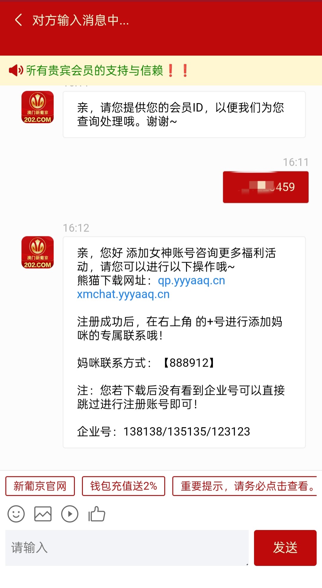 领取添加专员彩金,需要您的游戏账户累计充值5000+激活专员福利,才能为您分配私人专员申请派送哦 随机最高888元另外还能拉您进我们VIP高级红包群及小电影群等福利