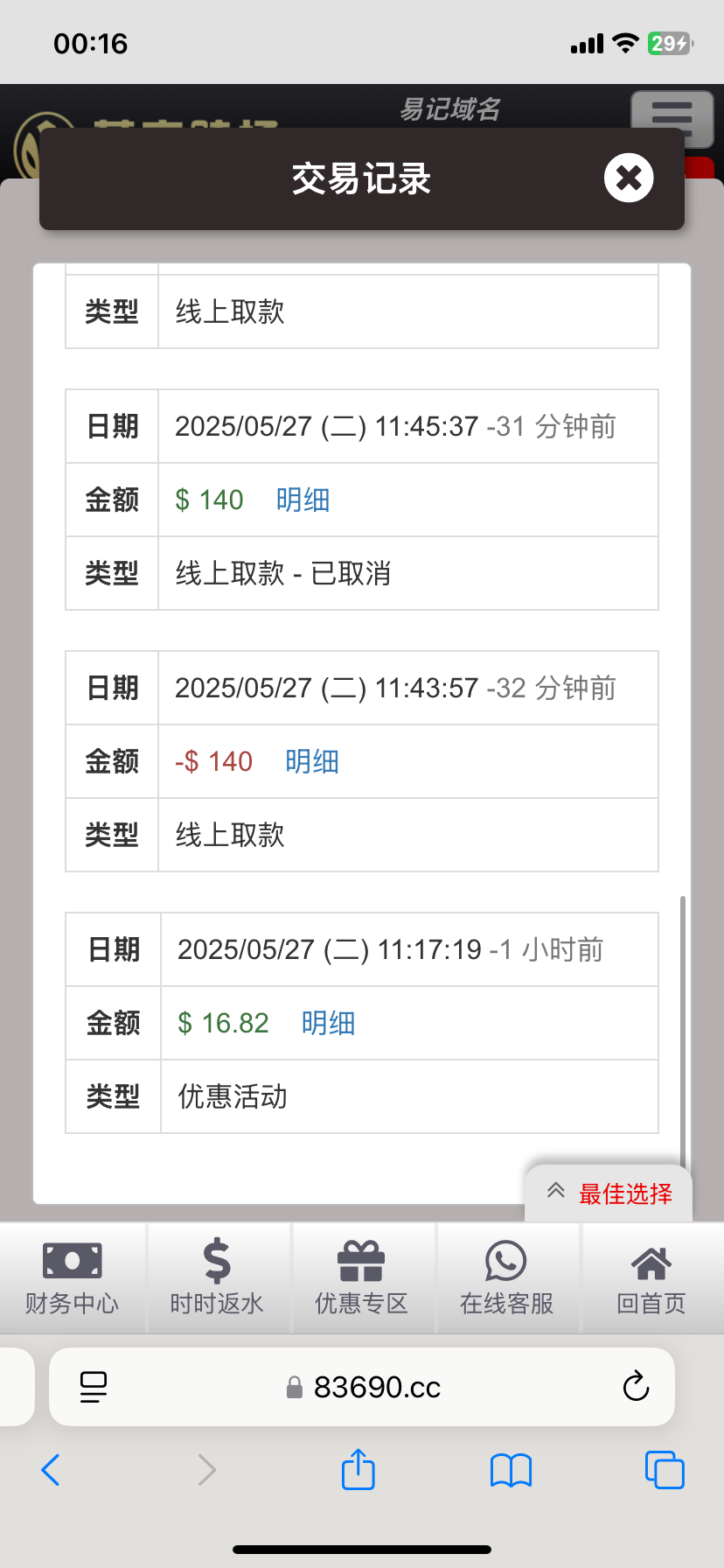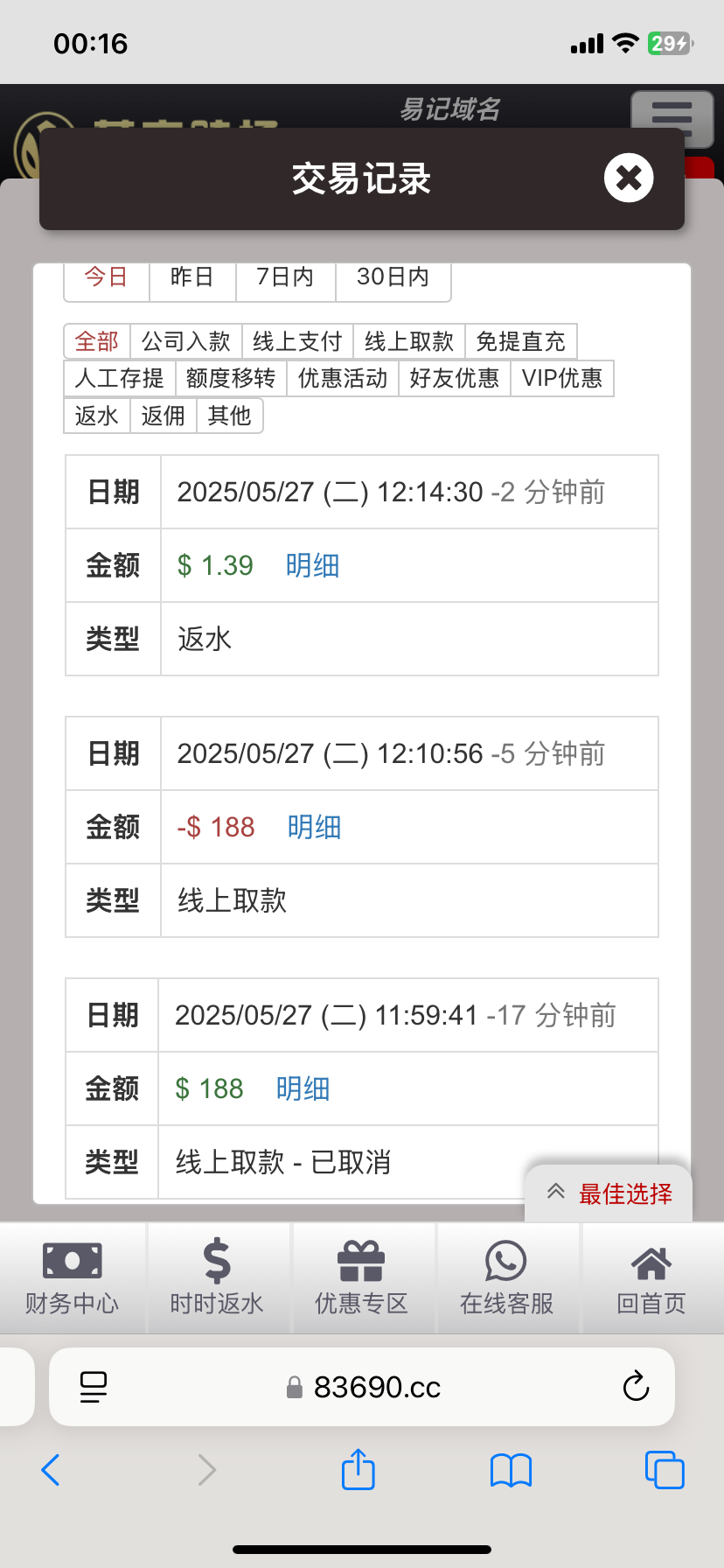 领了16块,打到二百多,只能提188