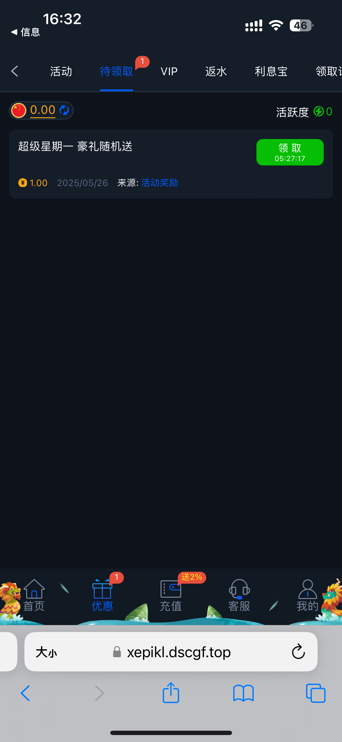 太好了,领1块过完年了