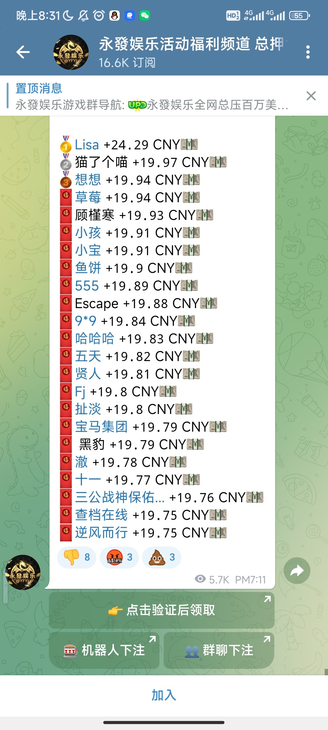 加这个群进去抢,刚领到还有4000个包@ying,点那个验证后领取