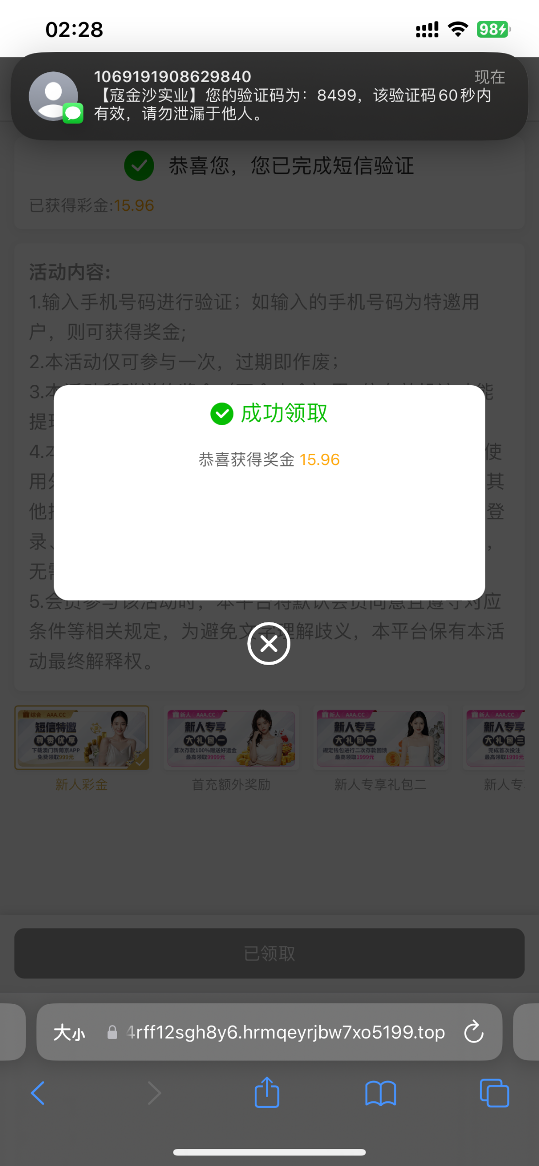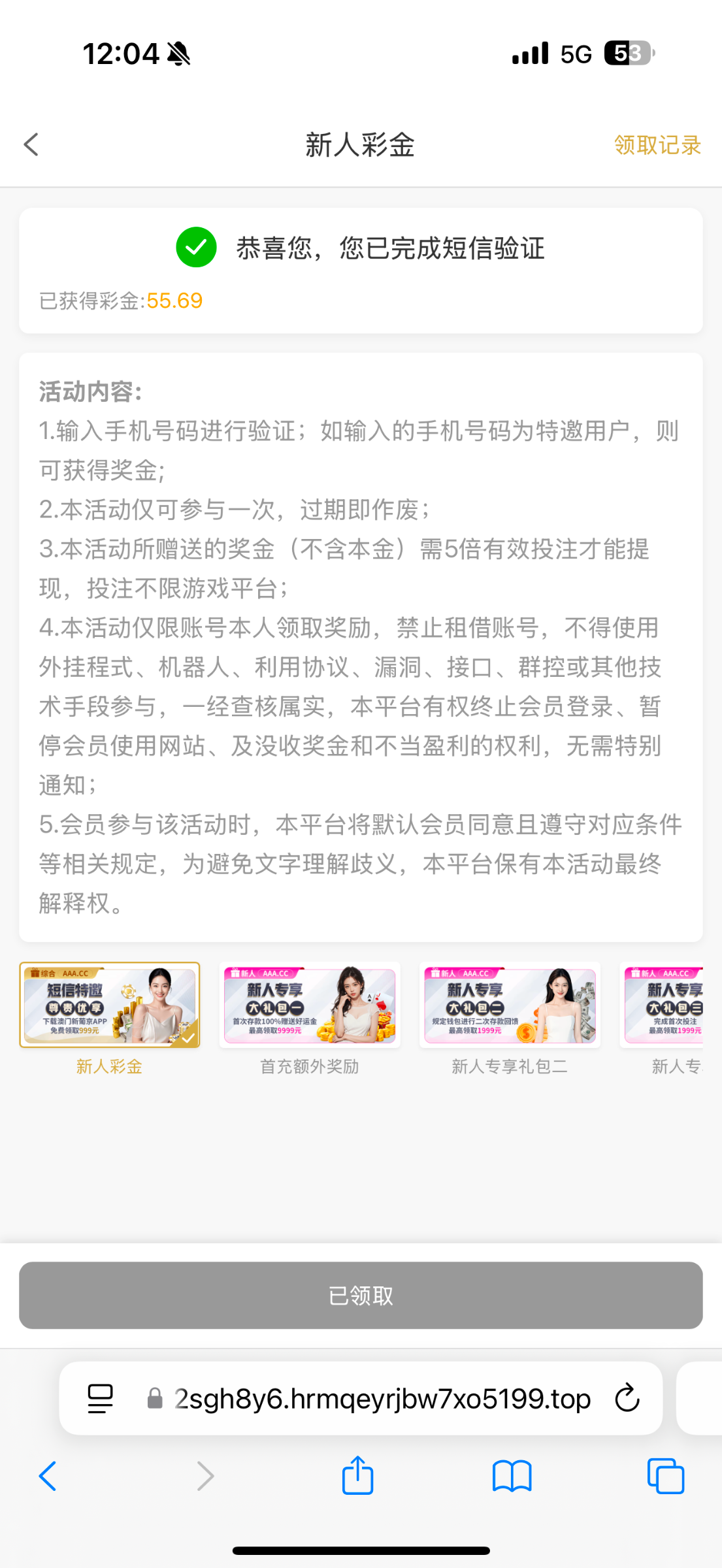 收到短信进去的以前注册过没绑定号码,刚绑了收到短信的号码就可以验证了,有号的可以试试验证,我以前不行刚就可以了,短信地址 154.213.62.72 没有领到的老哥别中出好疼的