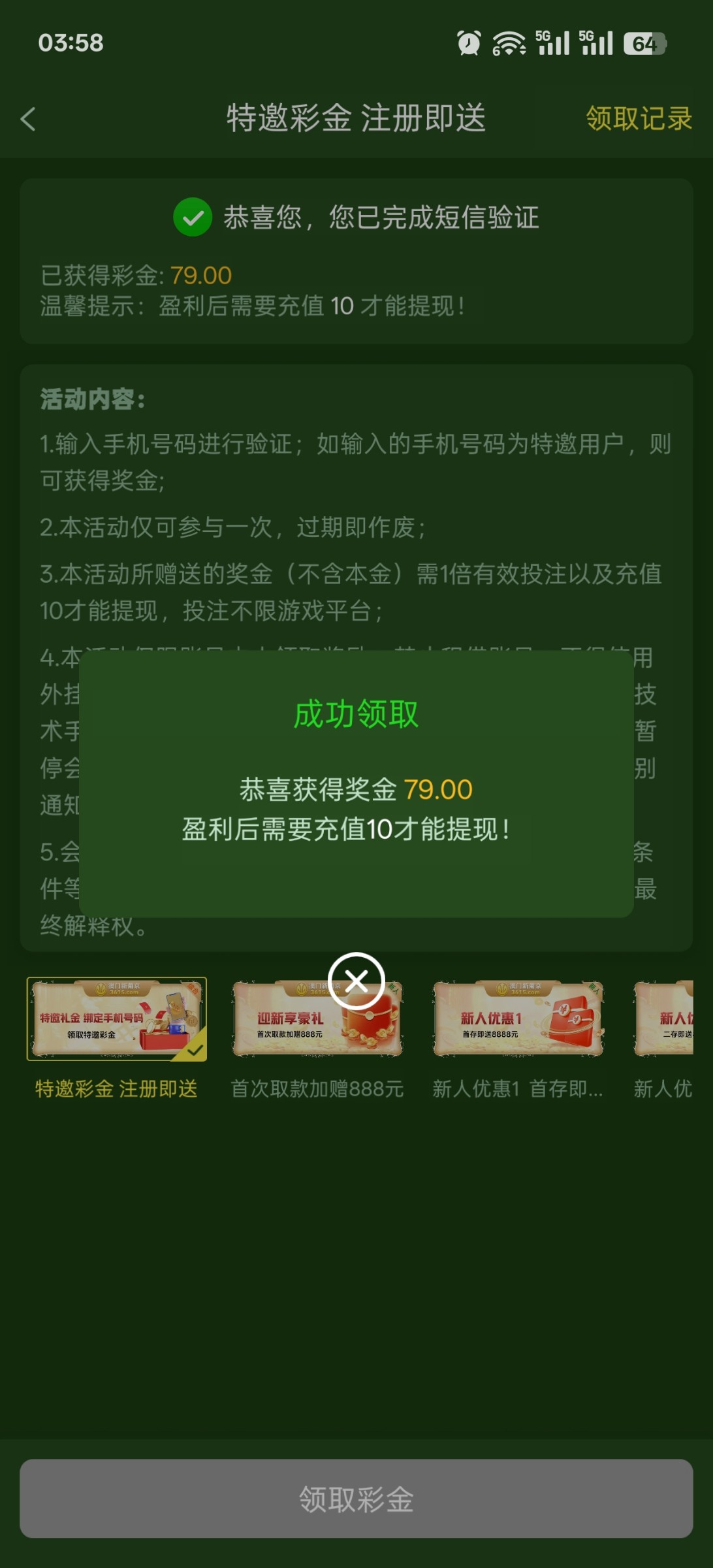 很奇怪我不是特邀我弟的也不是,我对象的号码是特邀还是79金额,充了10没打出来