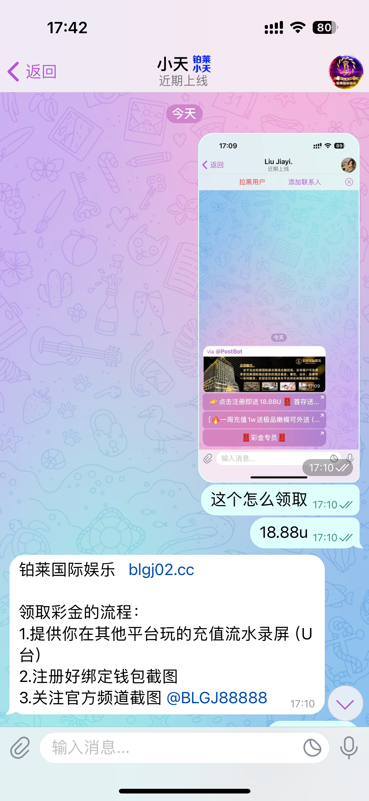 我是飞机上收到信息去找客服还是专员的发其他平台充值录屏就领到了,没有汇旺钱包的可以录其他平台的充值记录发给他就行了非常简单