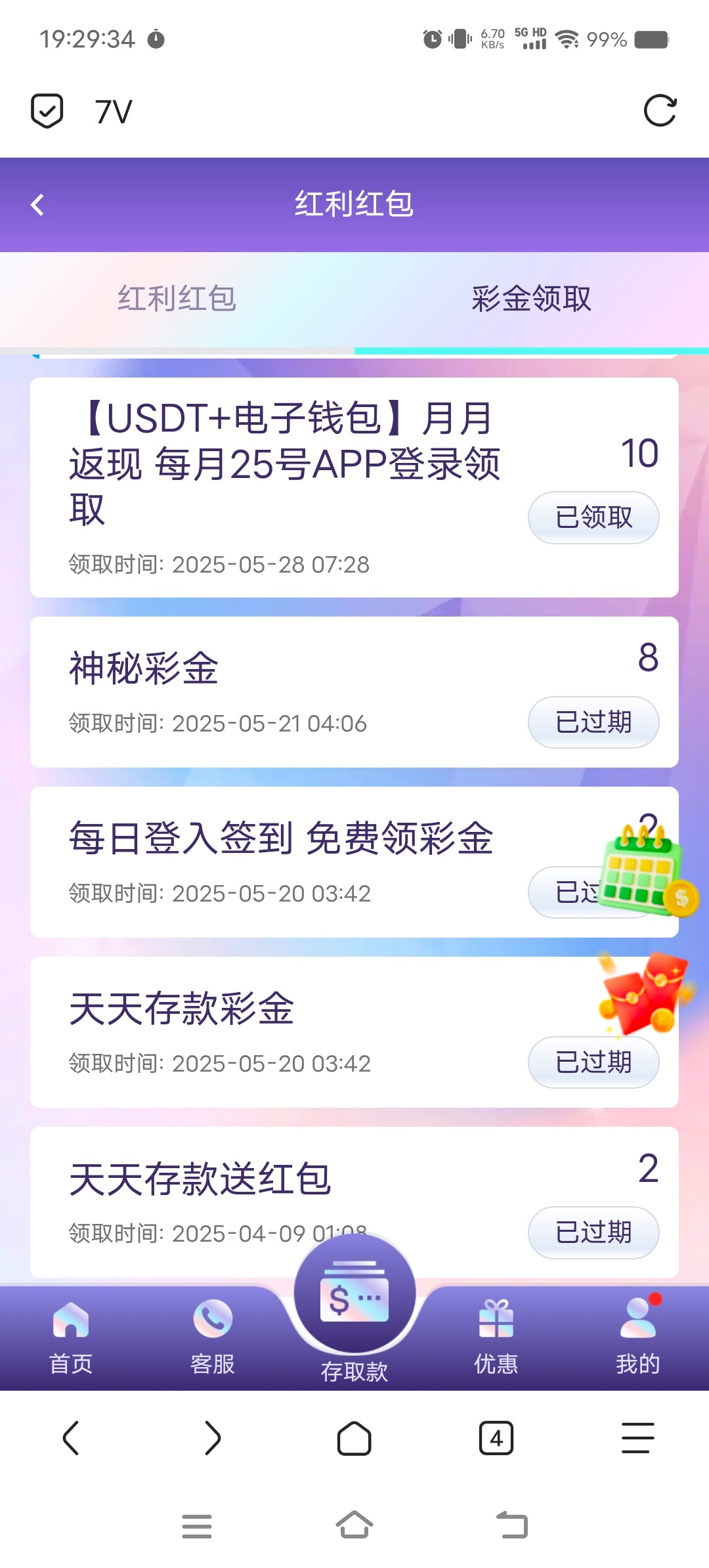 有玩过的上号看看,神秘彩金我没领过期了,网址7v.com