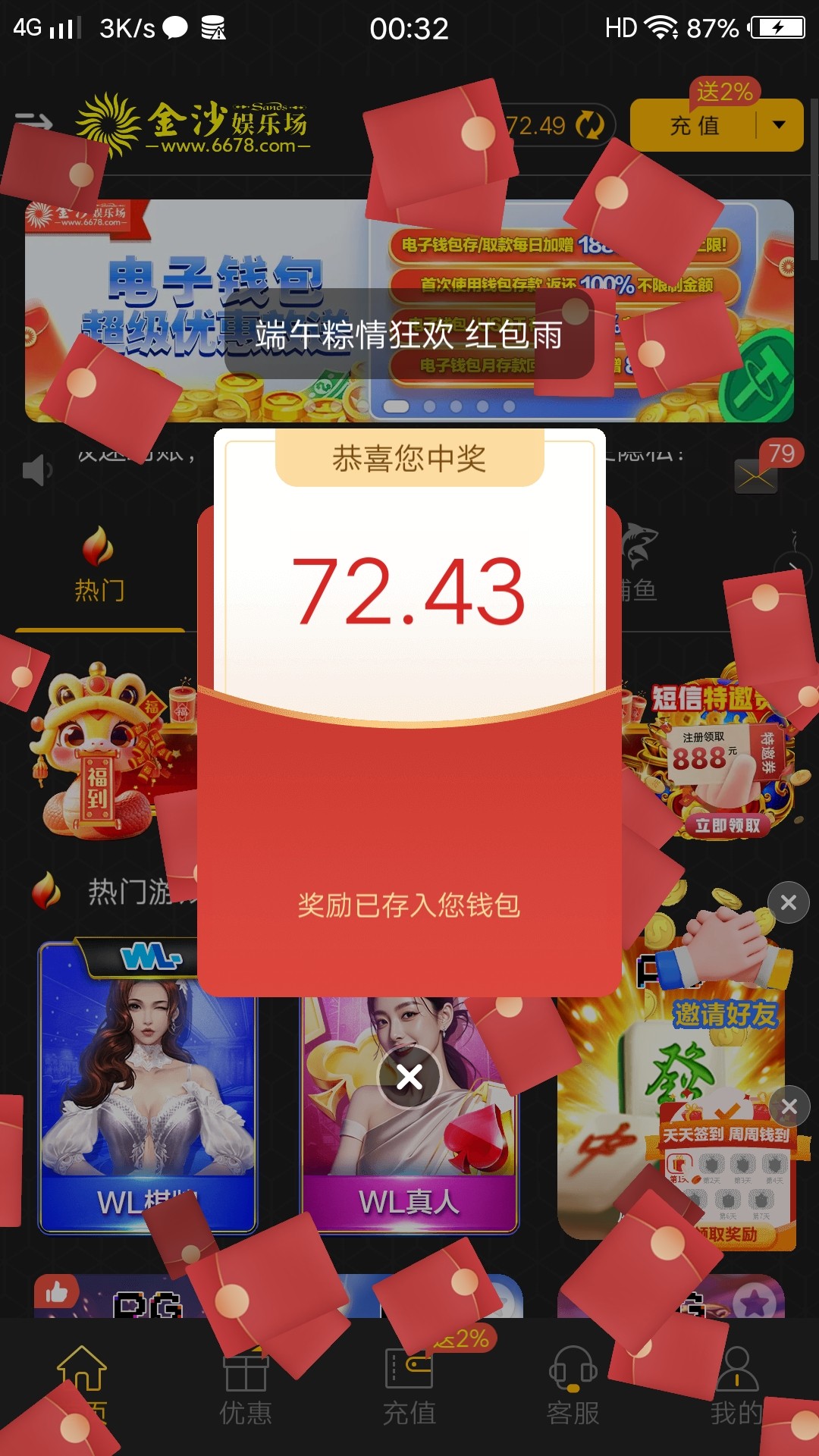 这不是红包雨吗?还登陆彩金,傻逼