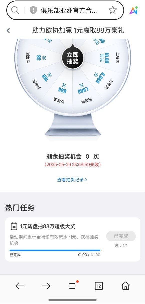 新一轮转盘活动投注一块就能抽奖了,抽奖最少8块钱