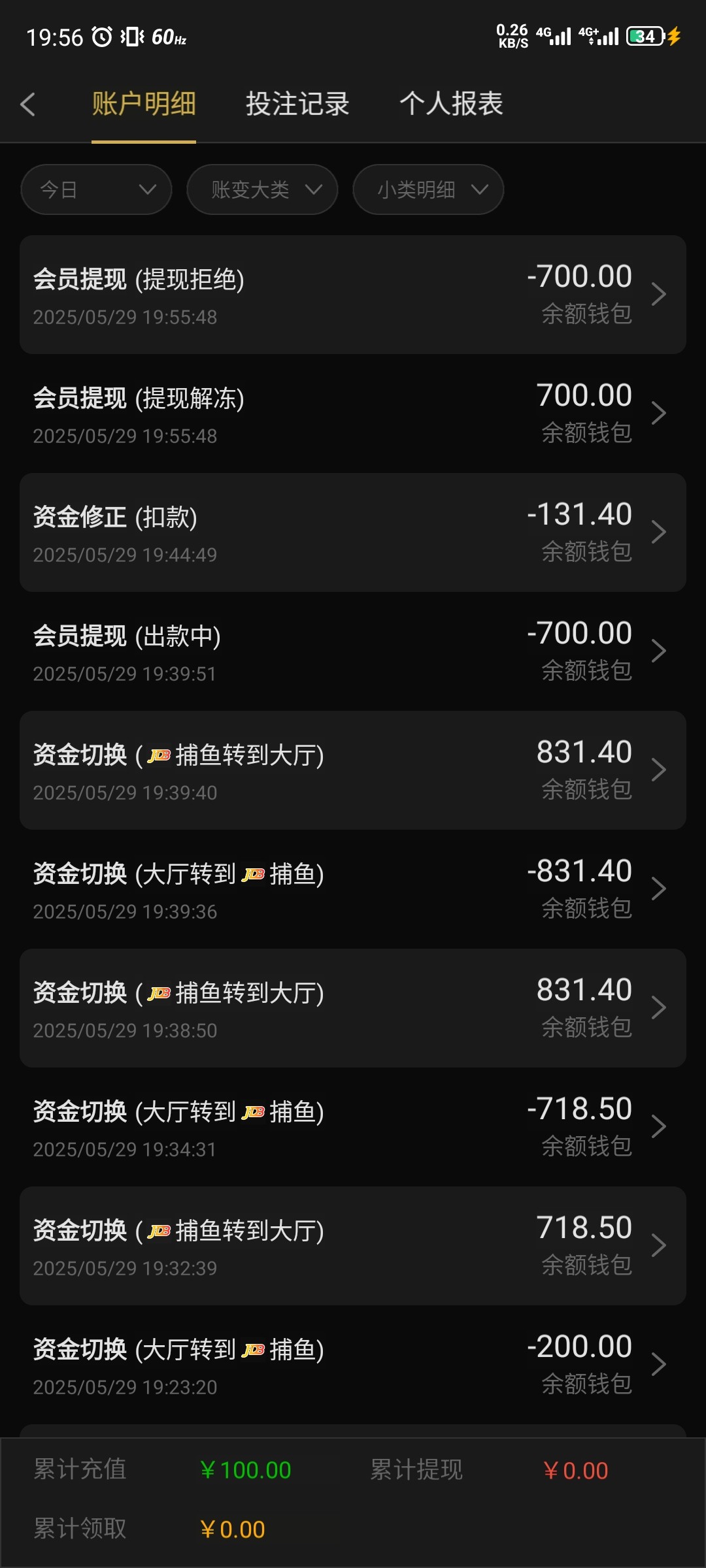 100提700不给出款,还有100多余额也扣了,真的累了好不容易赢一会