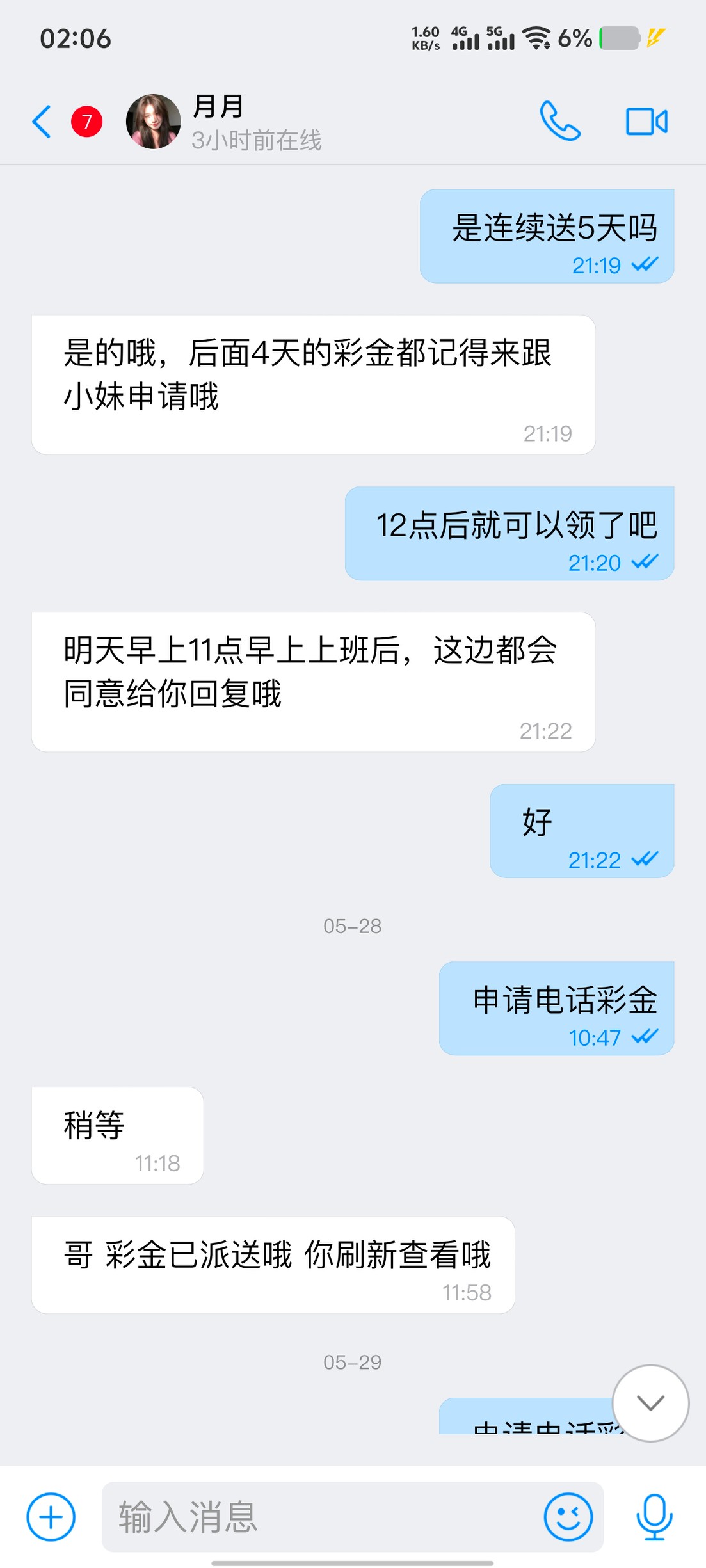 每天送249,连续送五天,要下载68聊天软件找客服