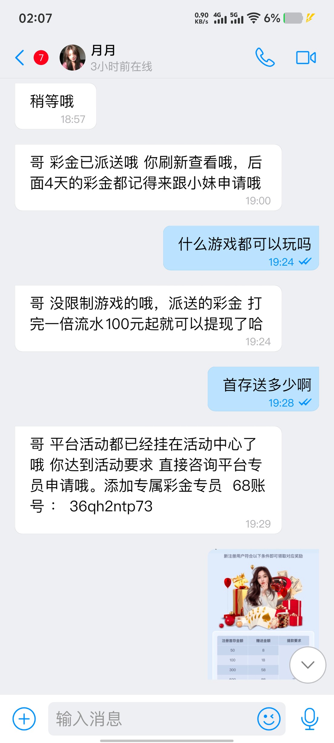 参加了一个充值1000的活动,还有28式回访彩金218是充值回访,非要来装逼