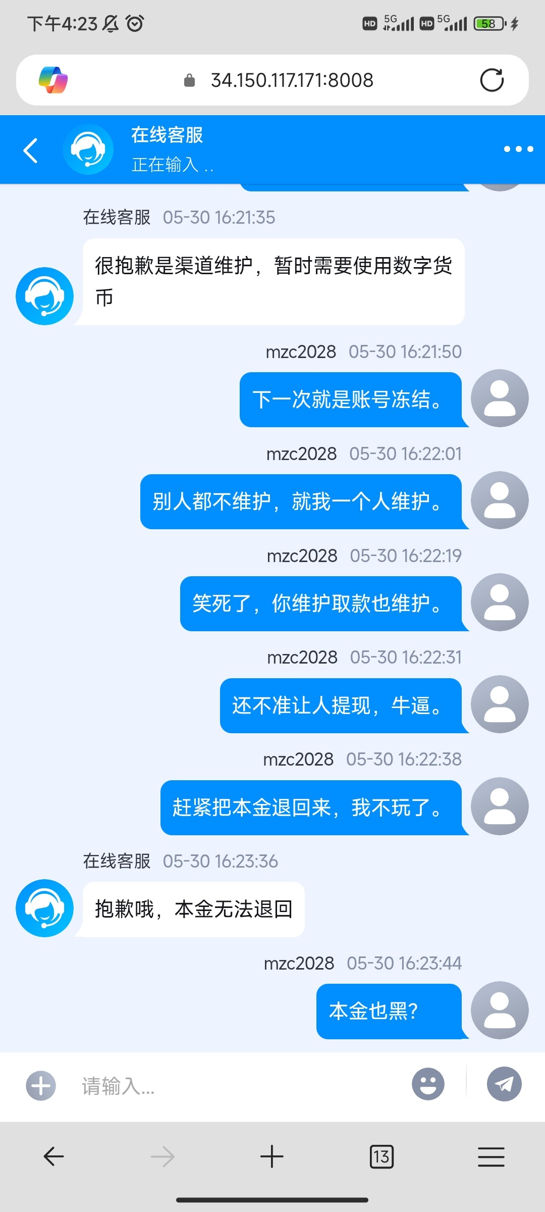 充值2k,提款7k直接被黑,充值的时候渠道好好的,提款的时候渠道都不见了,我朋友可以正常存提,避雷,现在的大牌子也开始黑来黑去,本金都不肯退