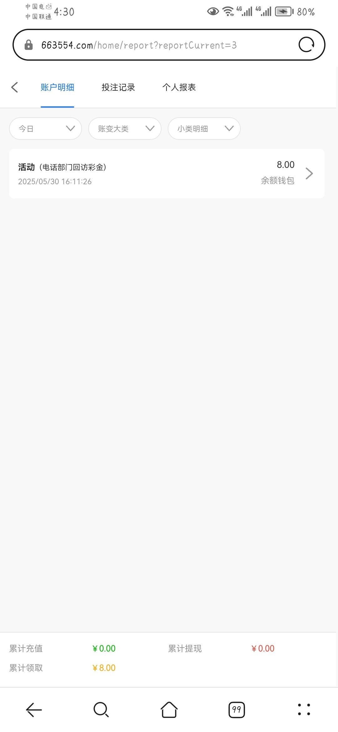 我冲了四五千,电话回馈就是8块钱,好小气