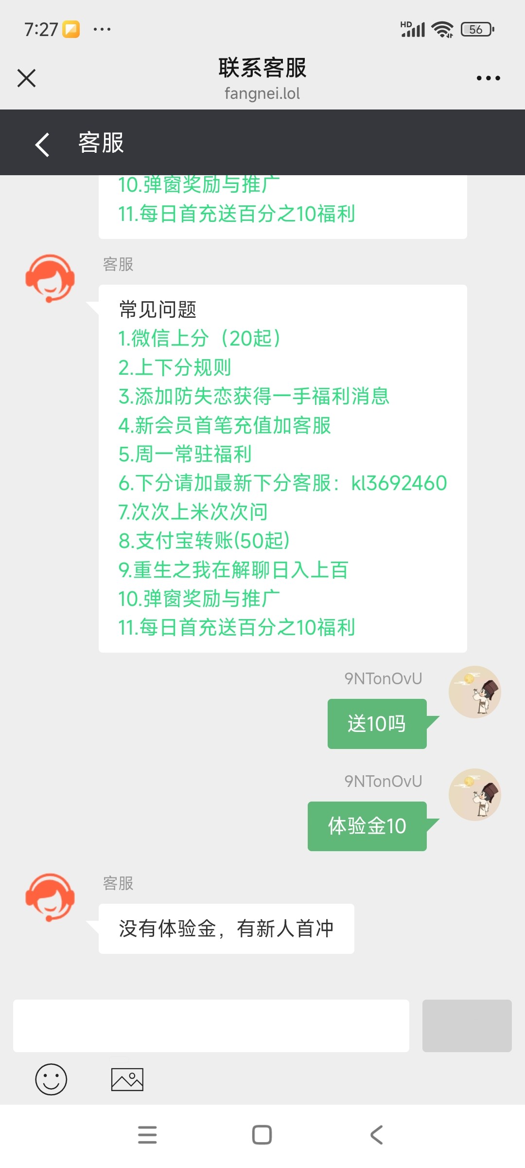 你这是什么时候的,客服直接来一句:没有体验金,只有新人首充