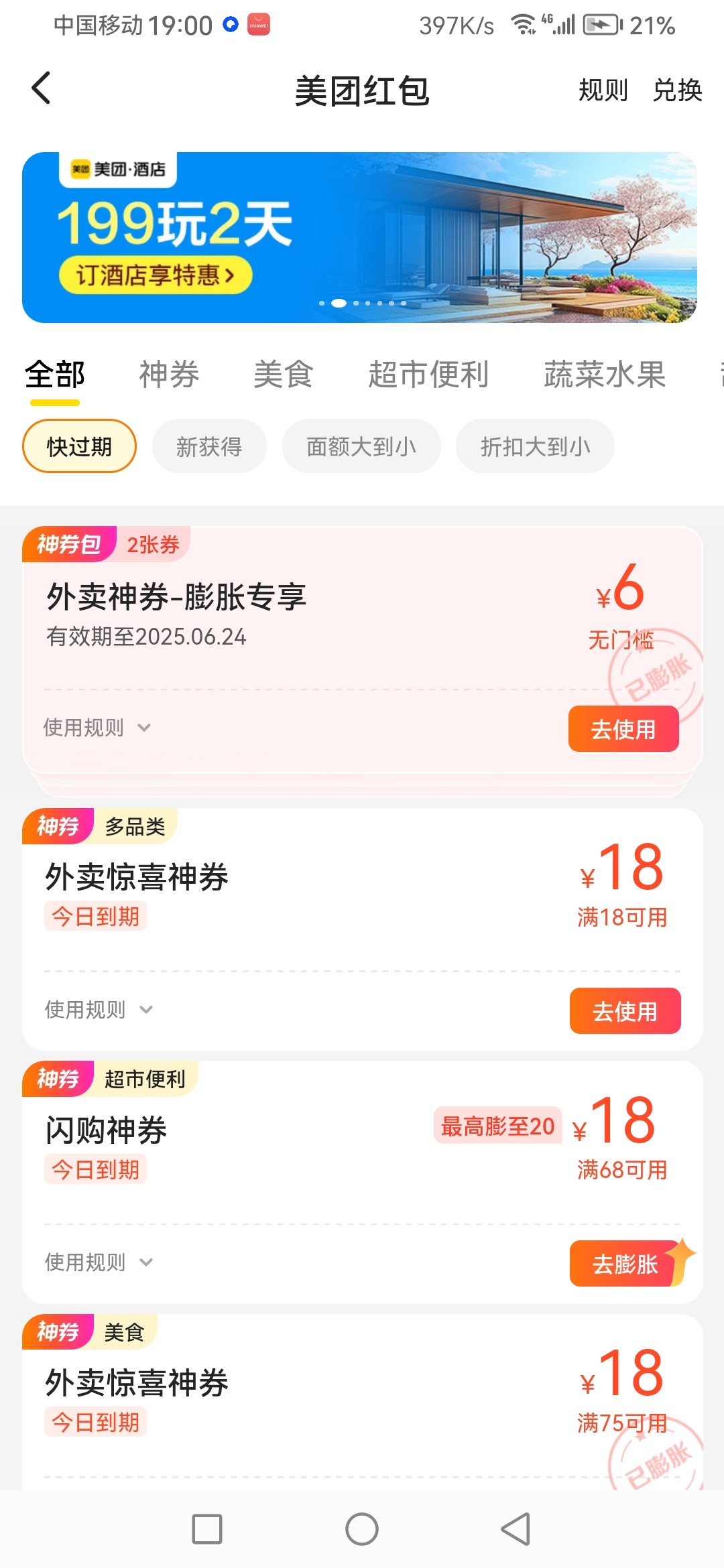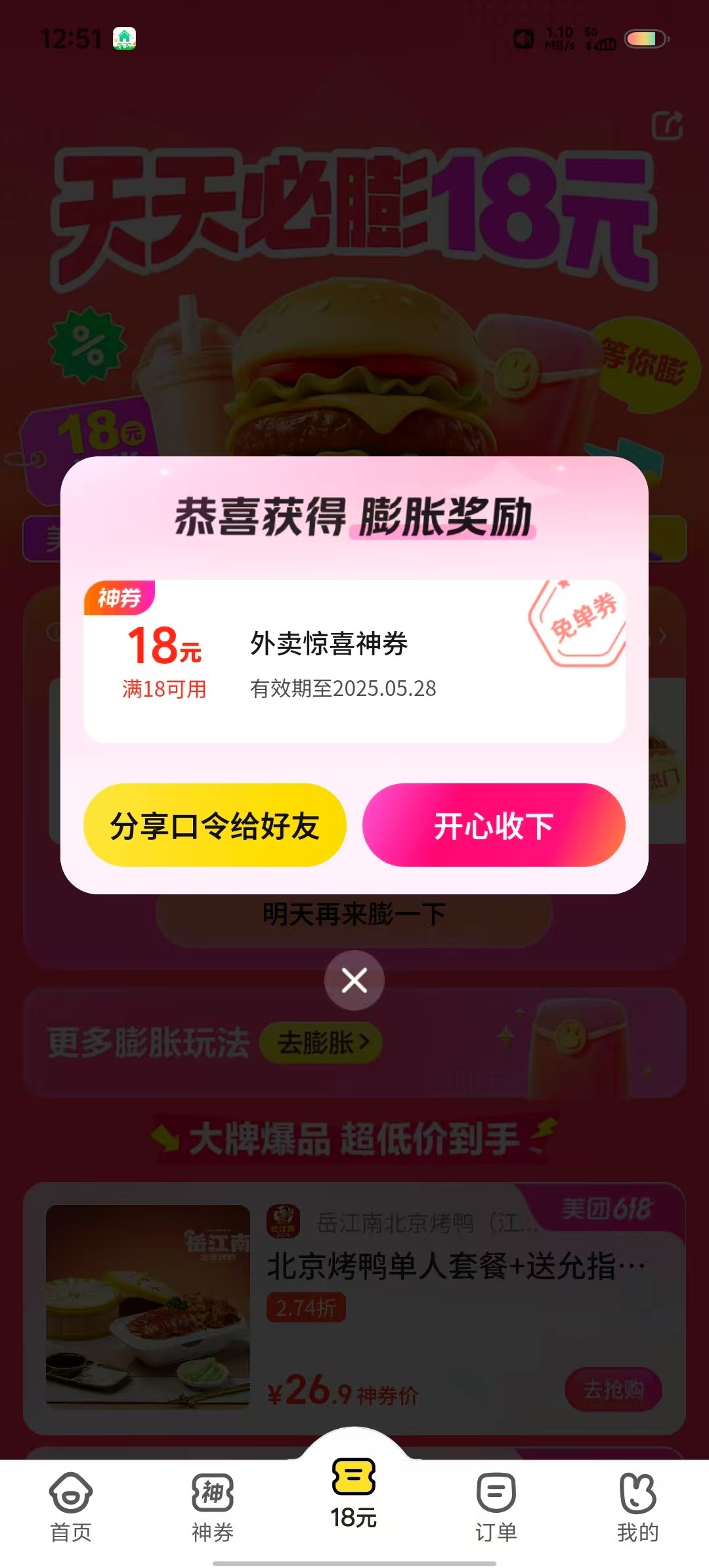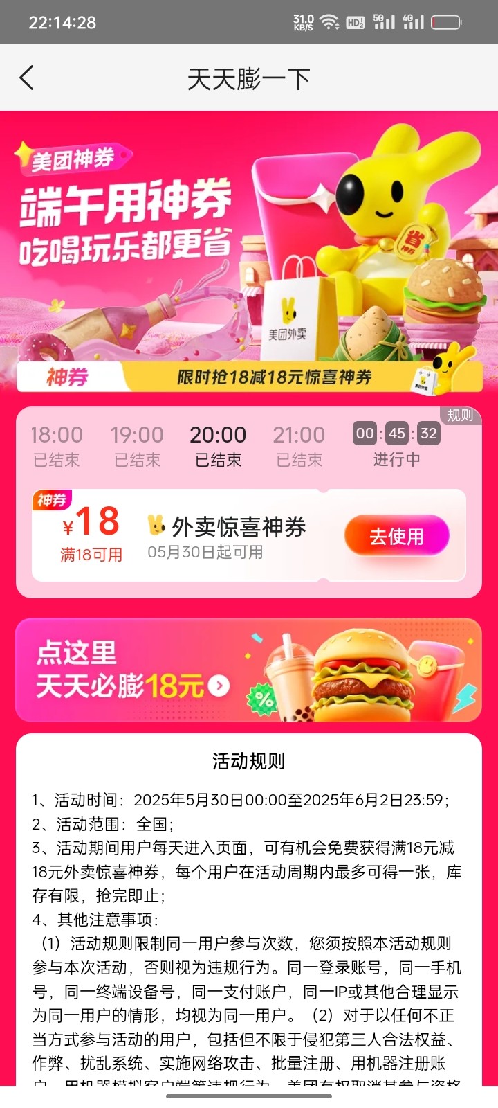 除了之前那个膨胀以外,这个是直接18-18不用膨胀,美团搜天天膨一下,准点领到6.2号