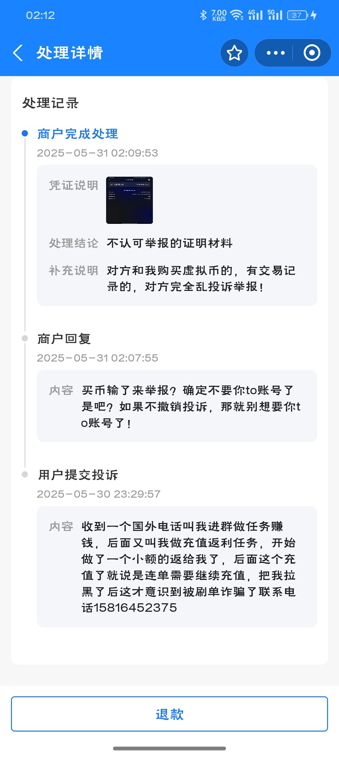 上个月26号用to卖了155币,今天被这煞笔给举报我支付宝了,他举报留的电话号码都还是空号,不知道是不是论坛老哥,真踏马活不起了,赌输了就来举报支付宝,这种人真踏马该死。