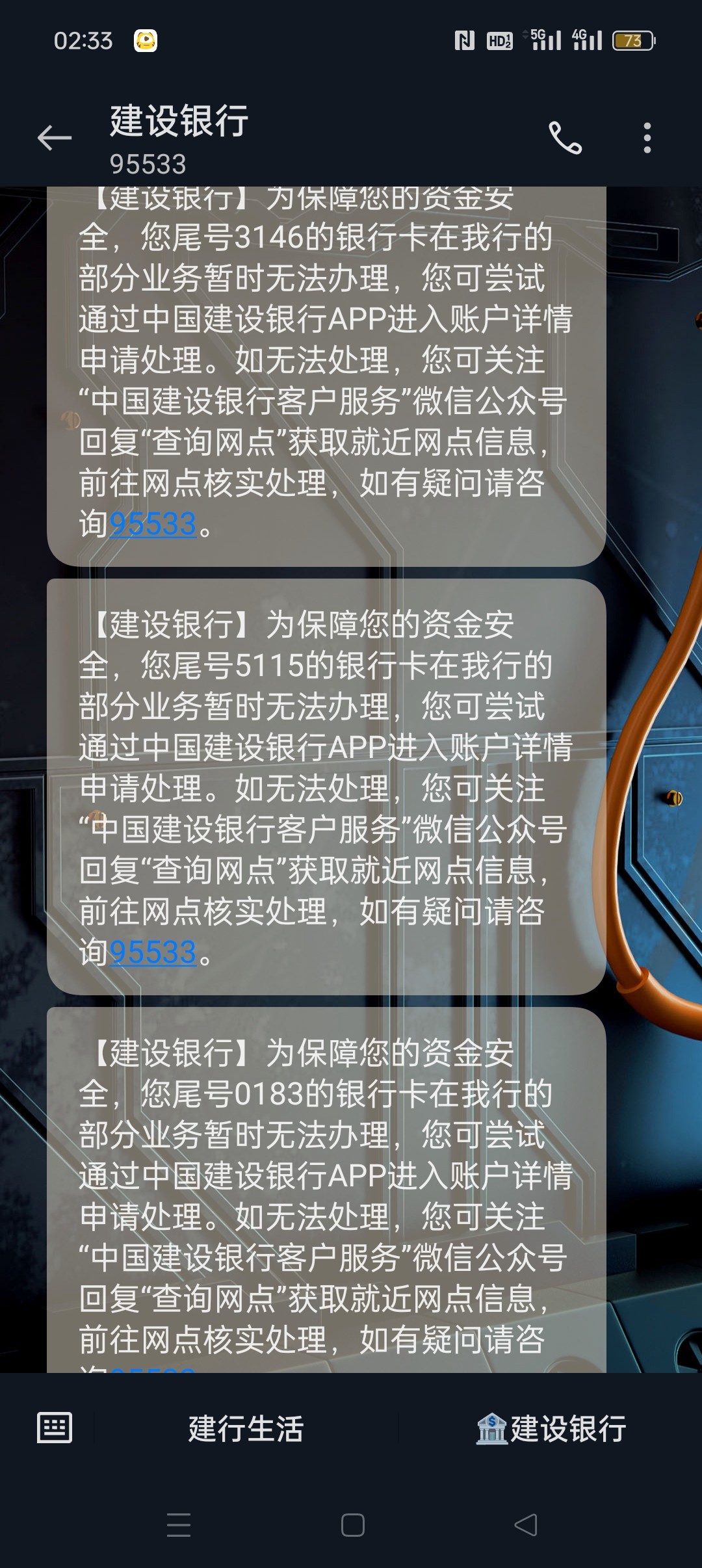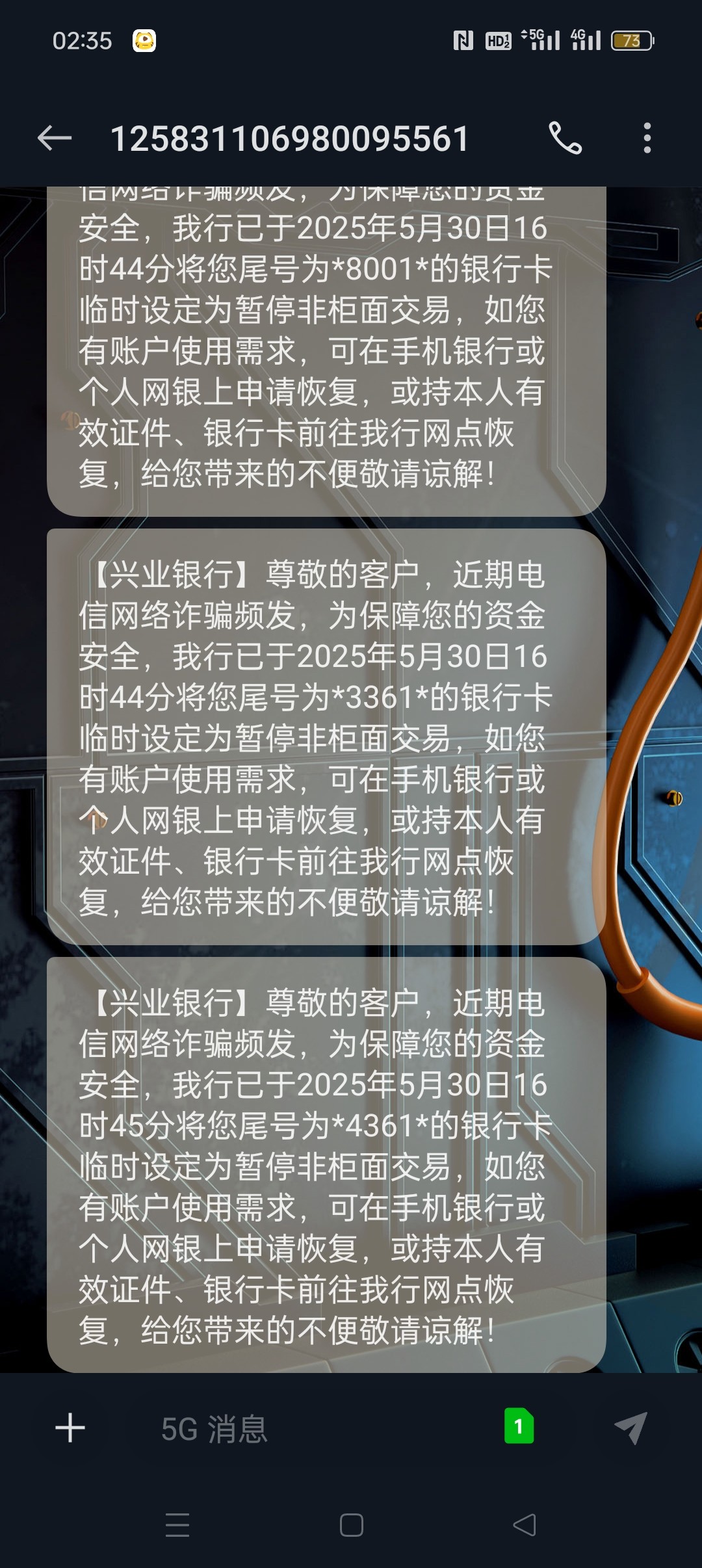 建行和兴业突然来短信是被断卡了吗