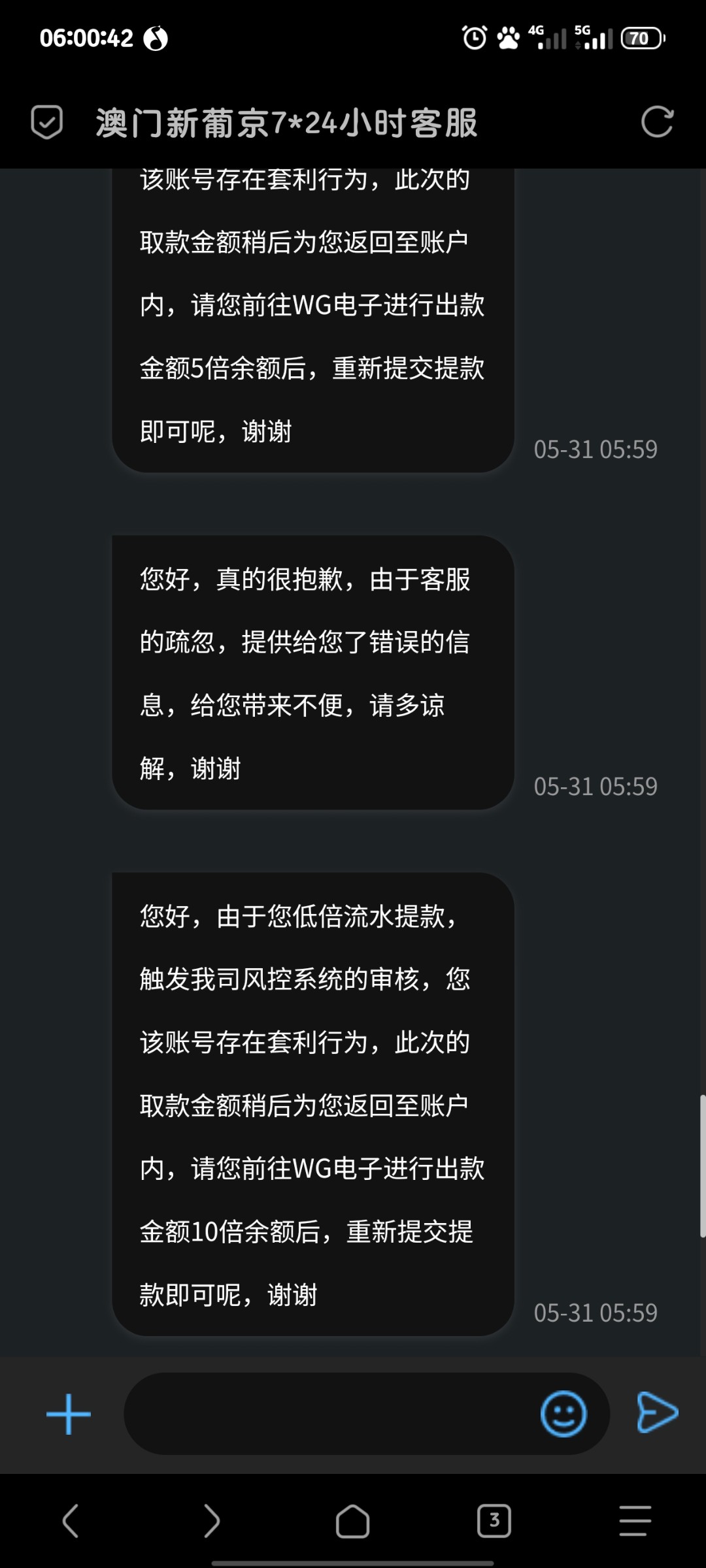 开始不黑,现在开始黑了。特邀台,上了100,输完了反水1块钱,打了100罚我wg电子10倍水。无语。。。。