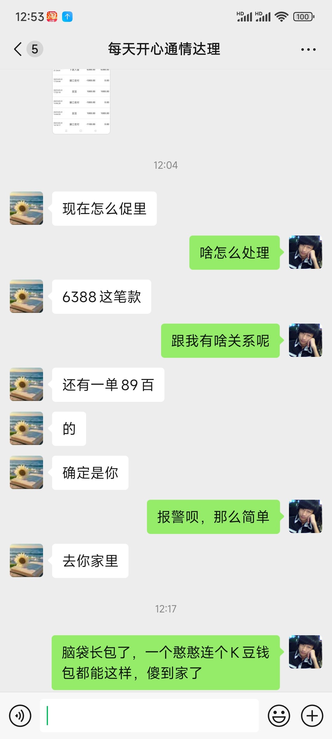 一起来就看到未接电话,加了一下微信就给我丢了一张K豆的流水图,还说我把他币弄走了