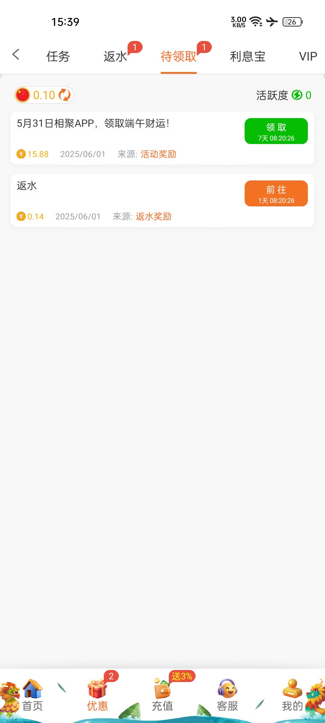 领了10块,要15倍流水才能提