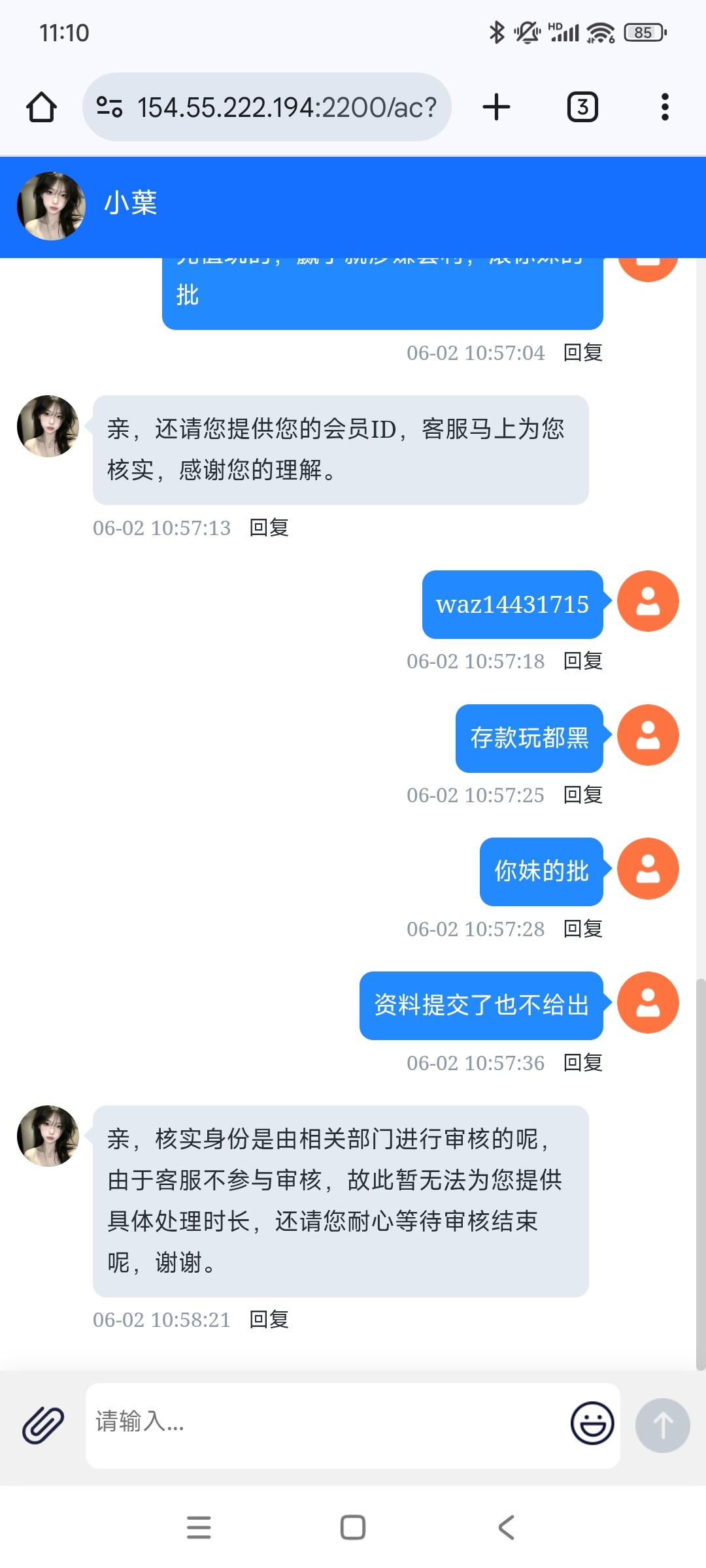你还别说我也是半小时没有动静忽悠客服拉了两笔3千的u出了