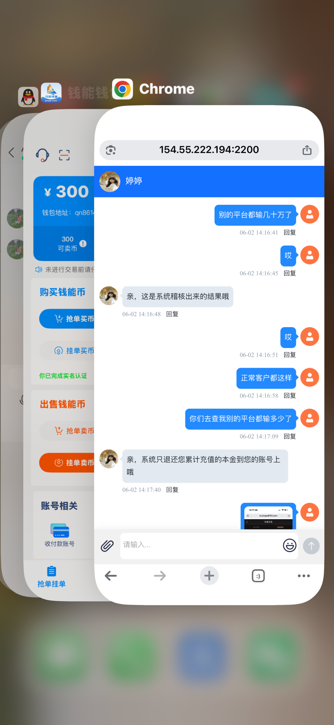 wcx6789 ▶ waz97485633 你还别说我也是半小时没有动静忽悠客服拉了两笔3千的u出了 7月前