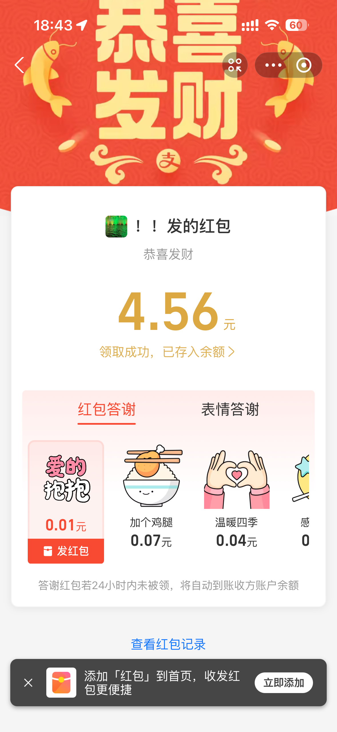 感谢老哥,领到4.56